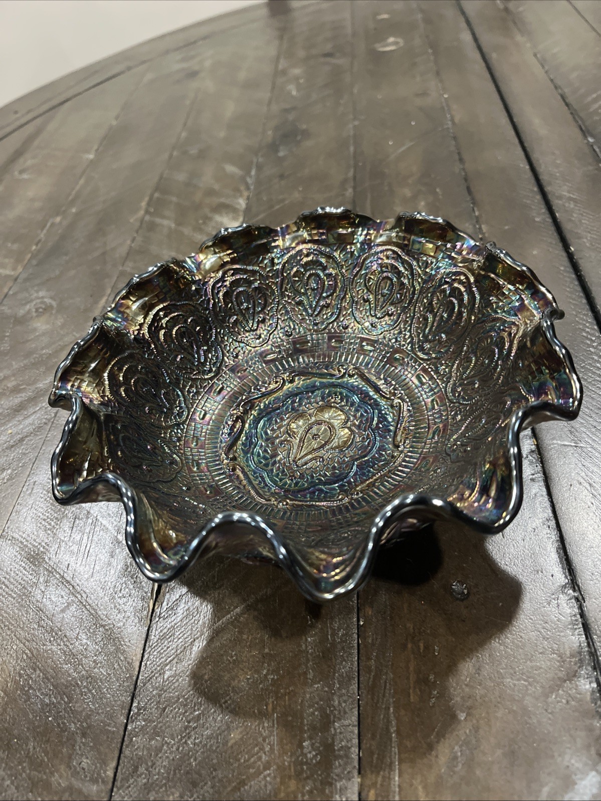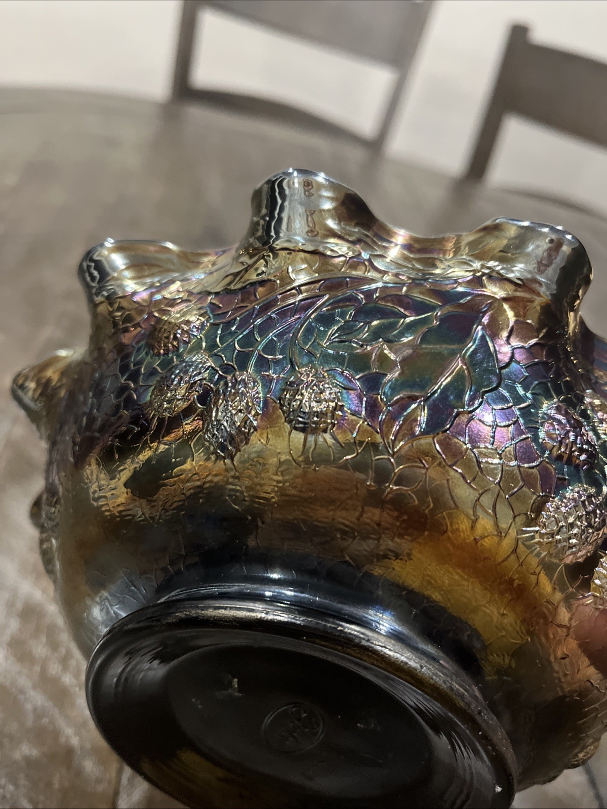 Fenton Parisian Medallion Carnival Glass BERRY Bowl 7 5/8" Thistle Outside