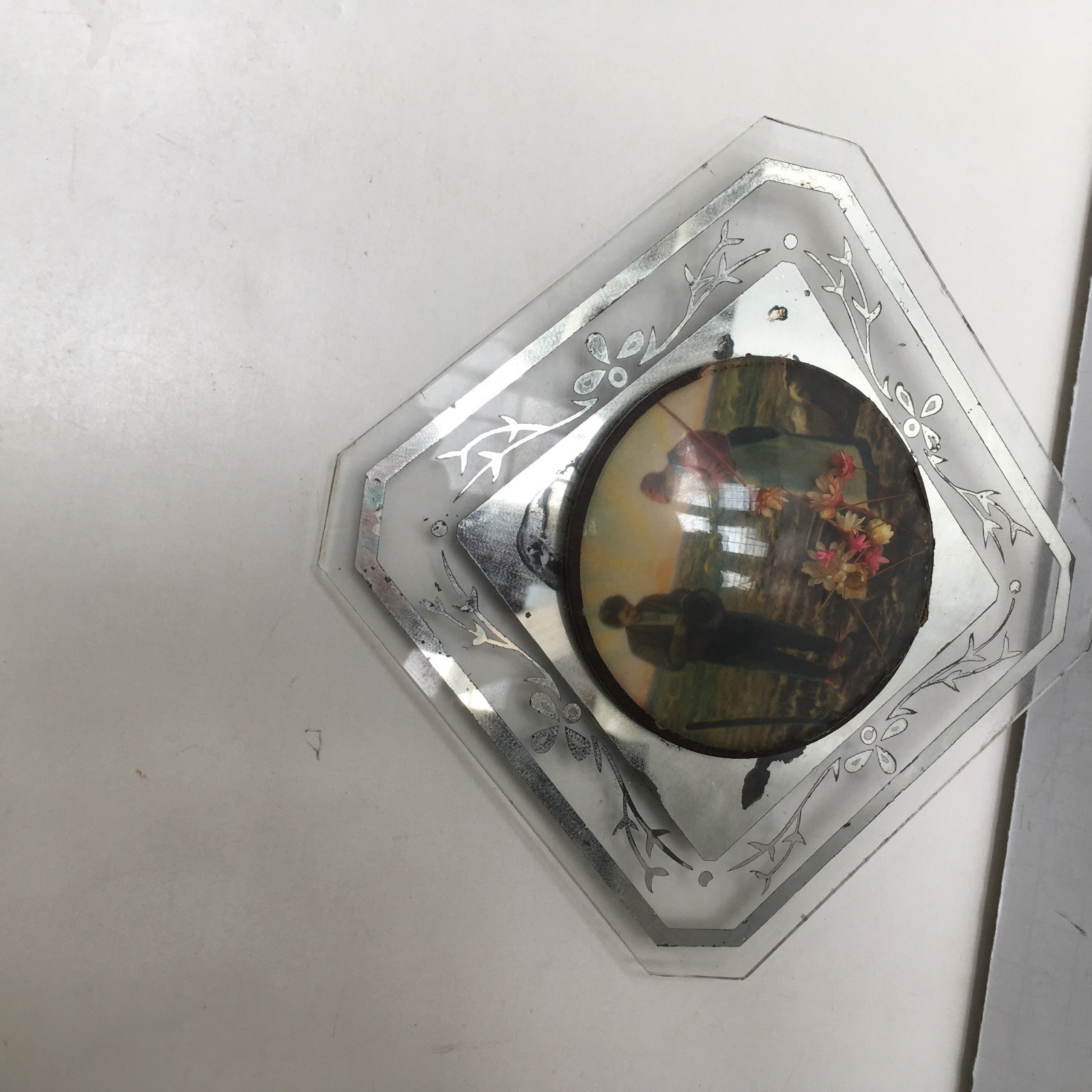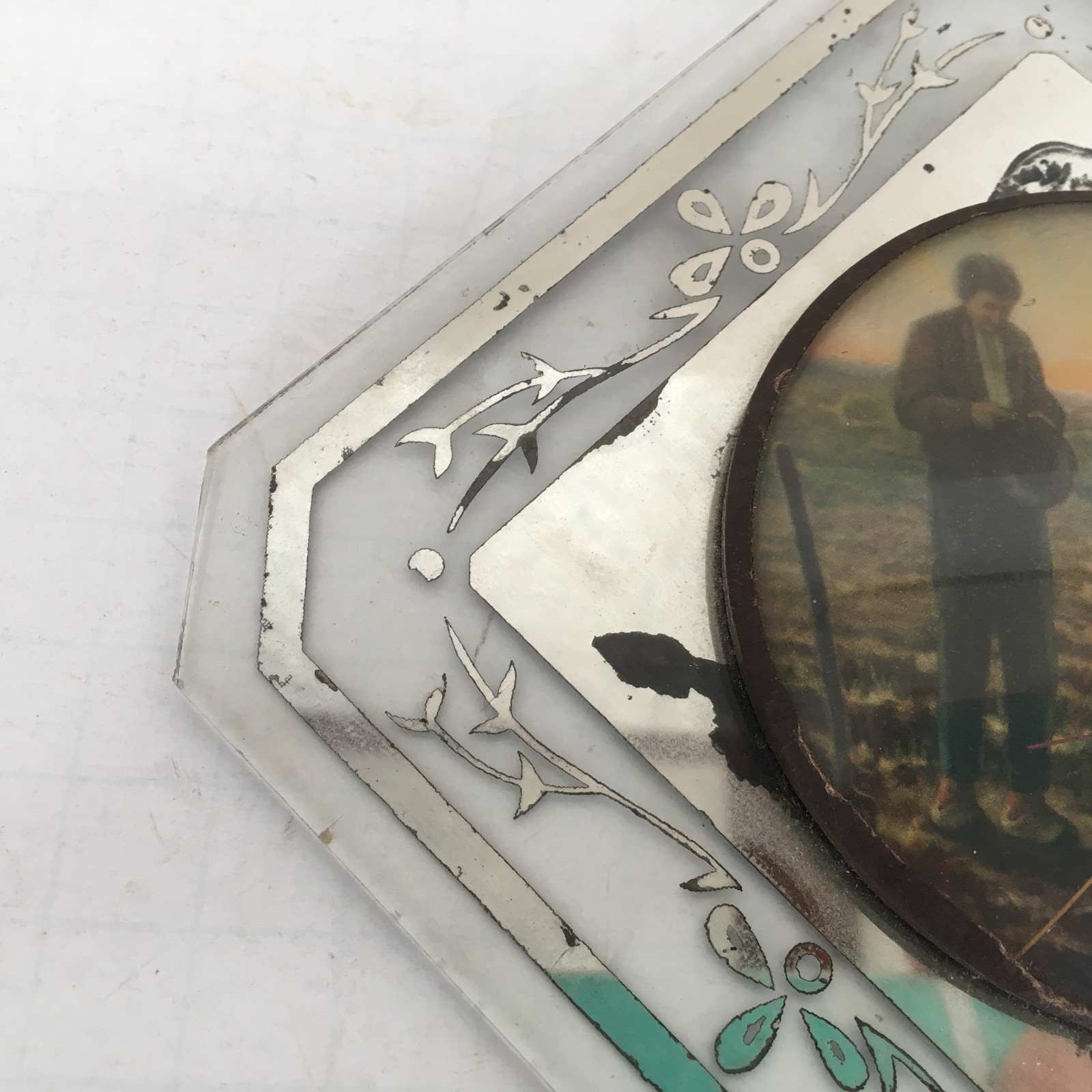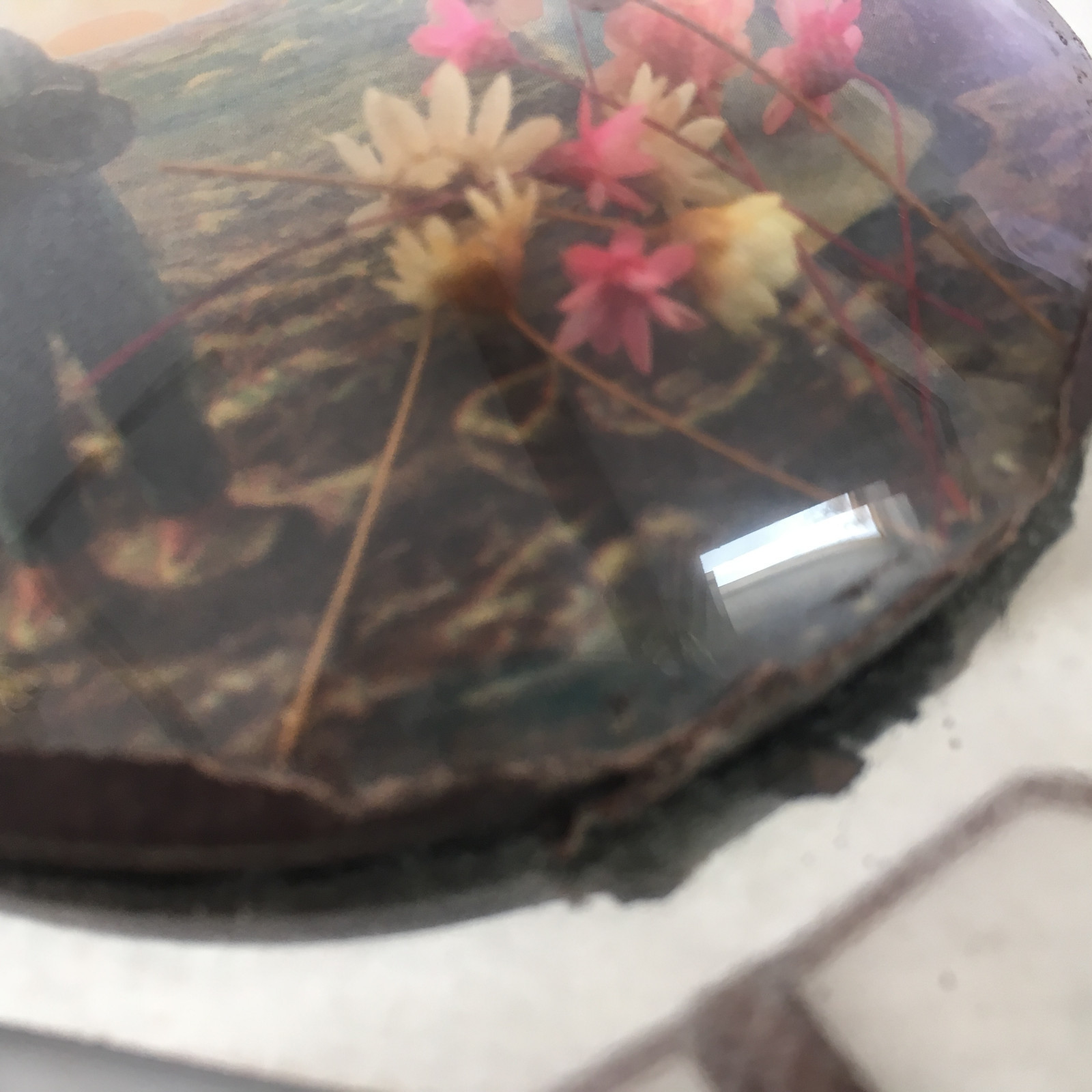 vintage The Angelus print mounted on glass with glass flue dome cover and small dried flowers (see pictures)