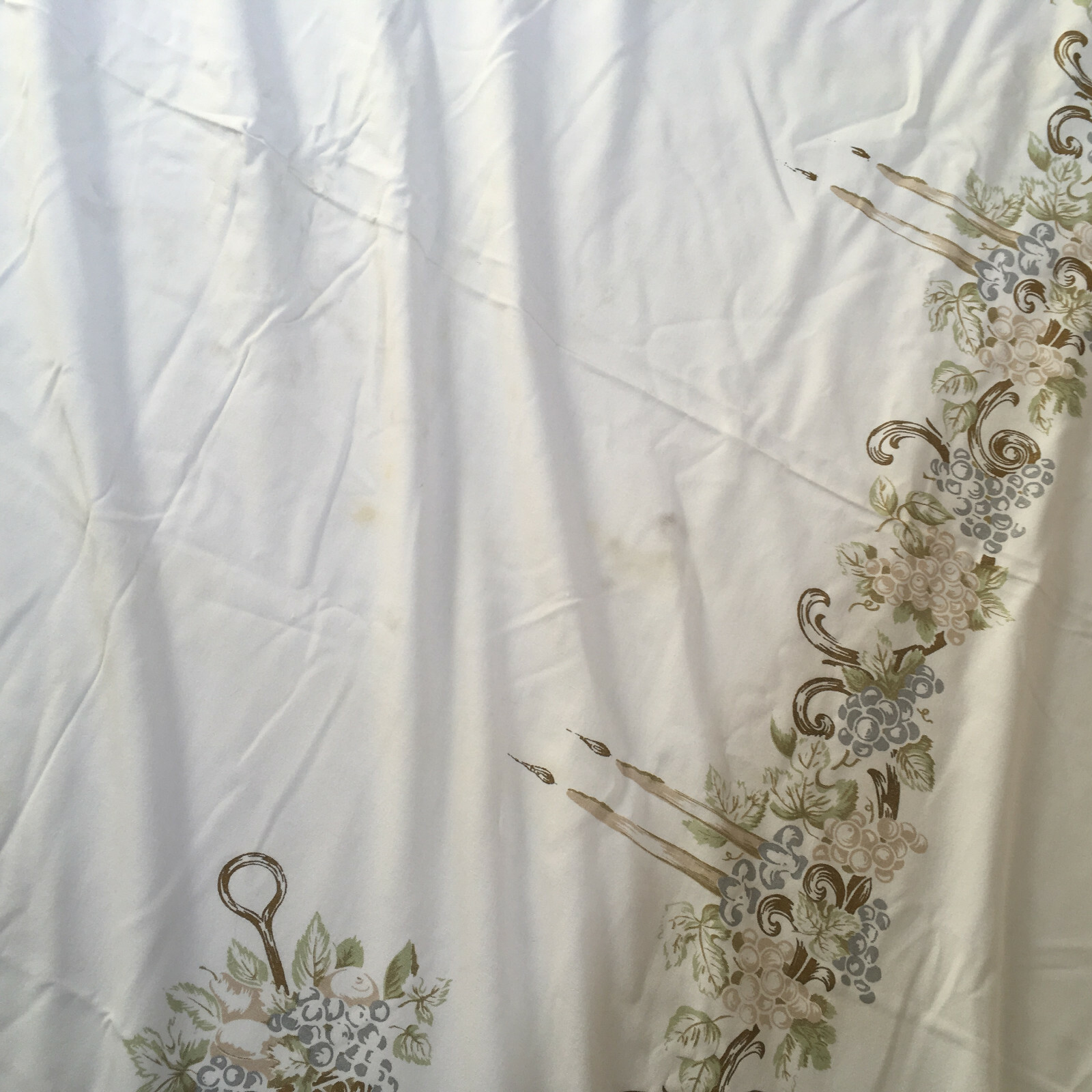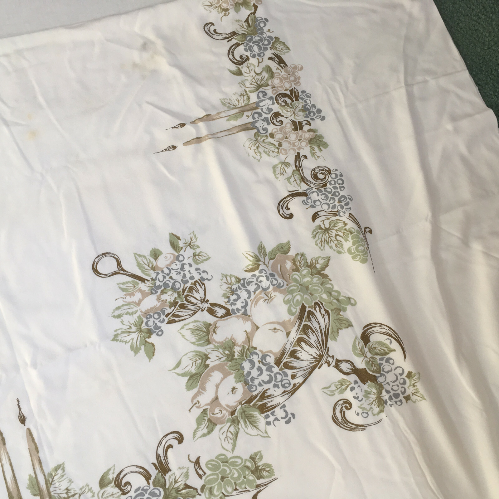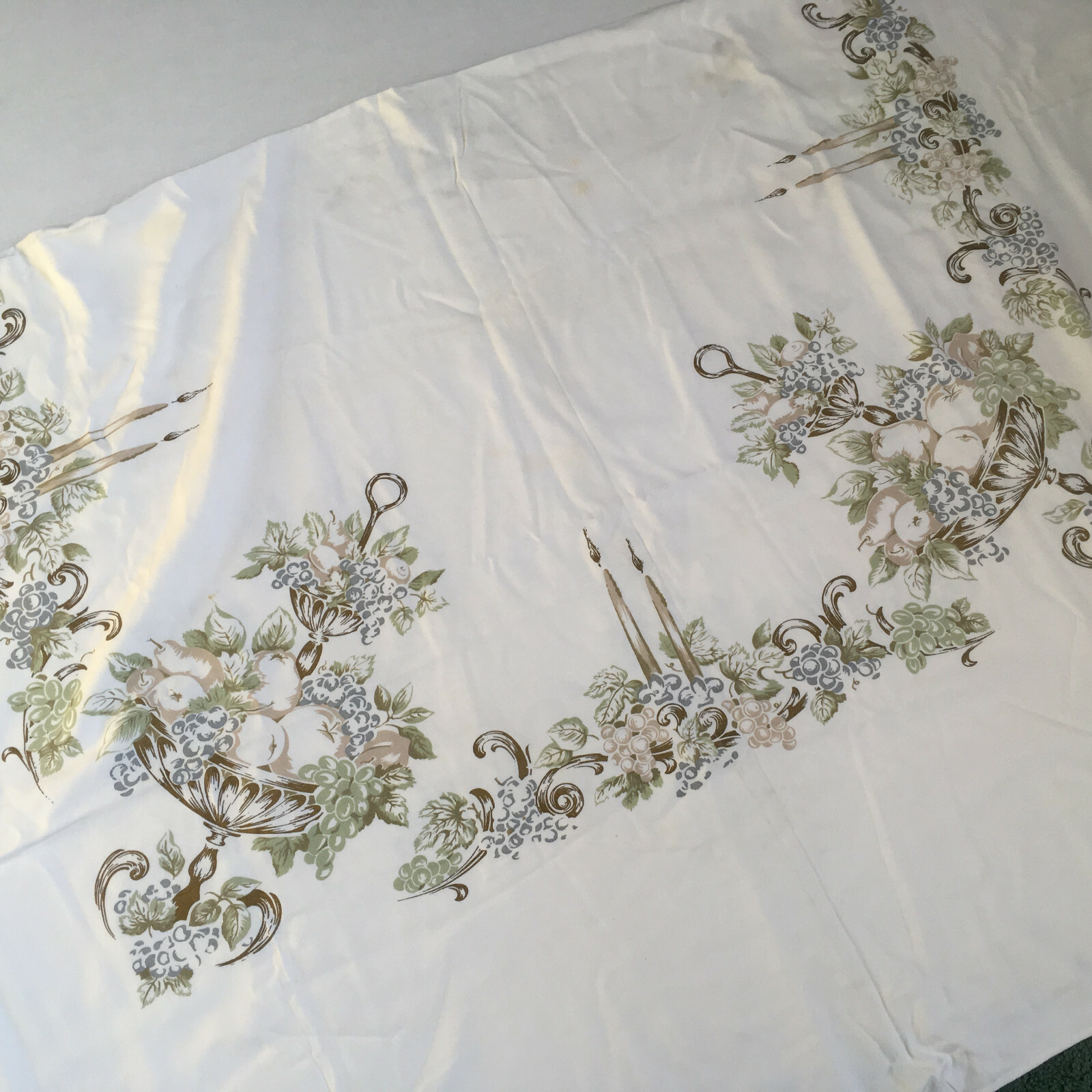 vintage mid century dining room tablecloth nature colors fruit candle pattern