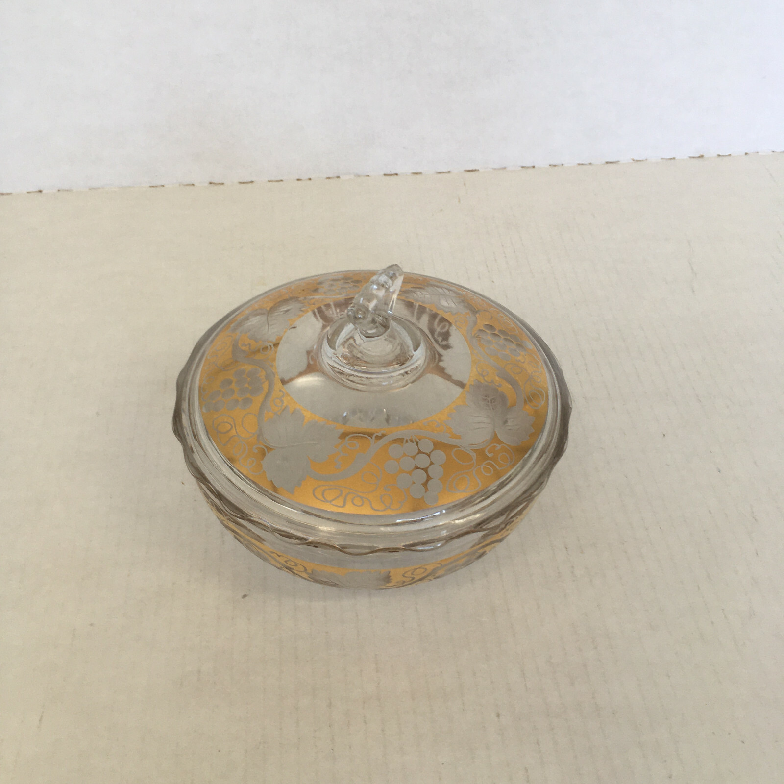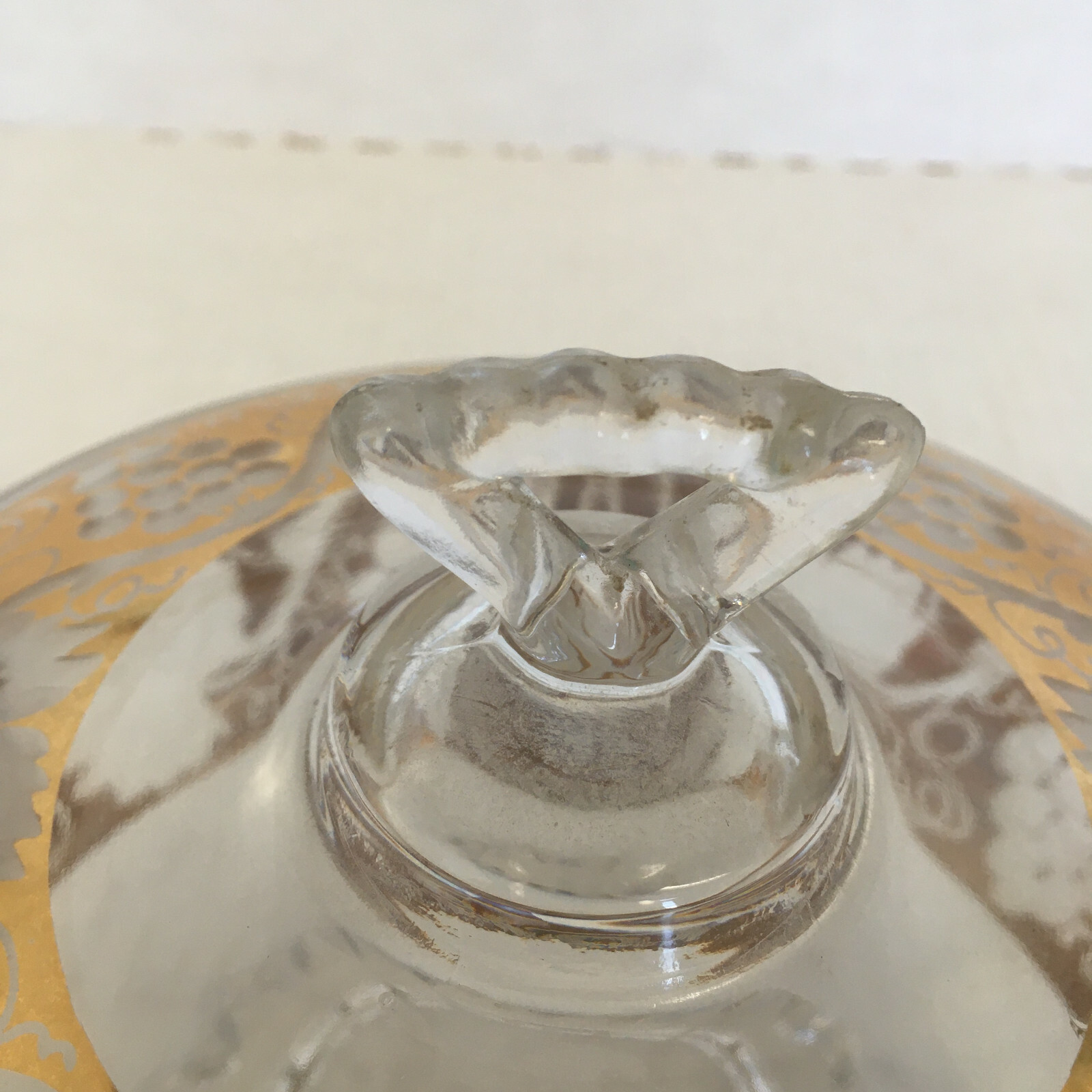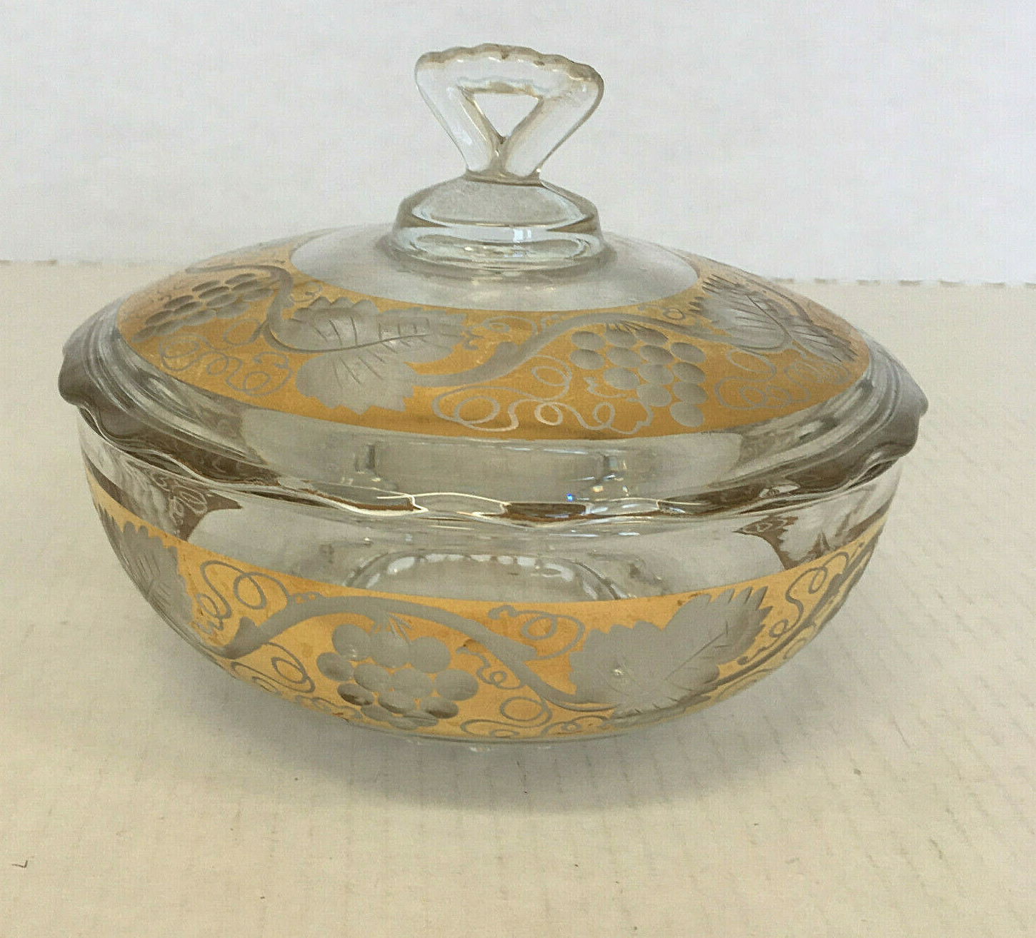 Vintage clear glass bowl with lid gold color and 15 similar items