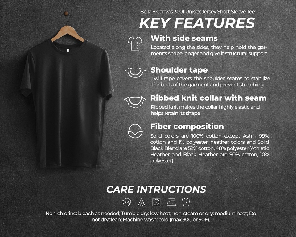 Crafted from 100% Airlume combed and ring-spun cotton for ultimate comfort. The ribbed knit collar retains its shape, offering durability. Side seams provide structural support, maintaining the tee's stylish silhouette. Special printing techniques ensure vibrant, detailed designs for long-lasting visuals.