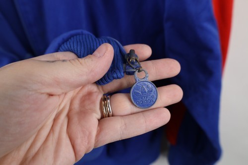 Vintage 80s 90s Adidas Mens 2XL Spell Out Color Block Velour Velvet Track Jacket