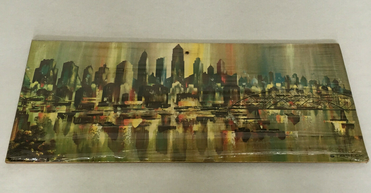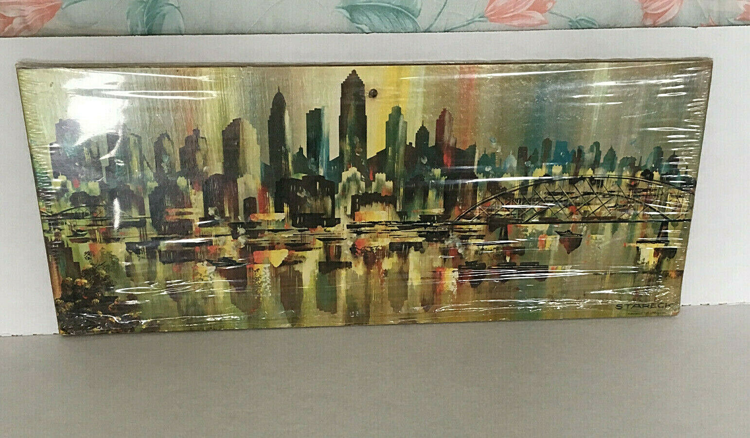 vintage modern wall plaque art reproduction Stareck city landscape mid century