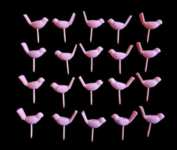 UP FOR SALE: Vintage Pink Bird Plastic Cupcake Cake Toppers Set of 20 Retro MCM Party Decor