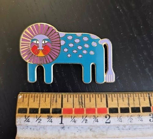 UP FOR SALE: Vintage Laurel Burch "Leonardo" Lion Multicolor Pin Brooch Gold Plated Big Cat