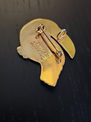 Add a touch of vintage charm to your jewelry collection with this Laurel Burch pin brooch. The gold cloisonne design features a colorful shape, making it a unique and eye-catching accessory. Perfect for people of all ages, this brooch can be worn on any occasion, whether you're dressing up for a formal event or adding a pop of color to your everyday outfits. Don't miss out on your chance to own a piece of vintage jewelry history with this Laurel Burch pin brooch.