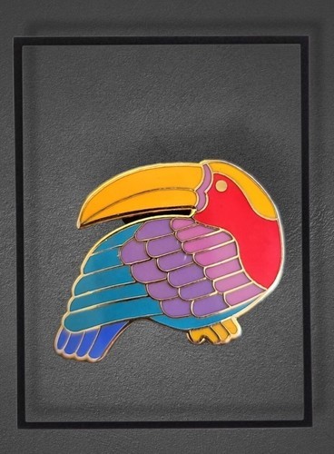Laurel Burch Toucan Pin Brooch Pendant Gold Tone Cloisonné Jewelry Vintage