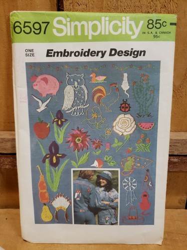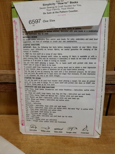 Vintage 1974 Simplicity 6597 Yellow Wax Transfers For Embroidery mostly Cut