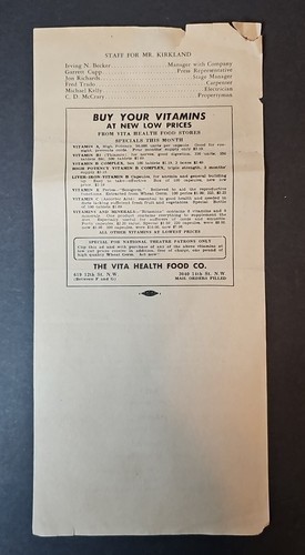 UP FOR SALE: Vintage National Theatre Playbill --in As Seen Condition