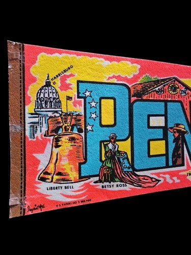 Vintage Pennsylvania State Felt Souvenir Banner Pennant 25" Liberty Bell Betsy