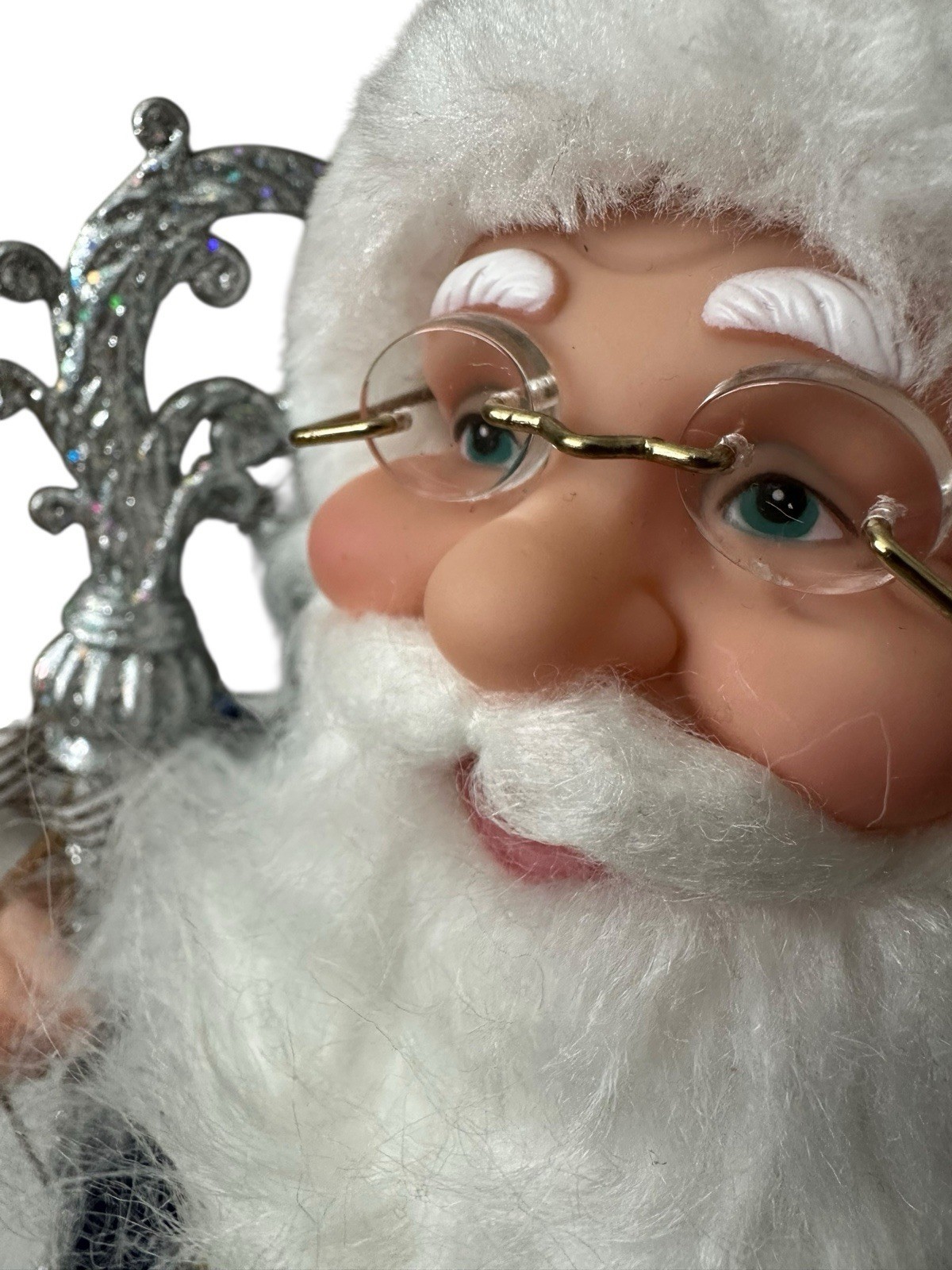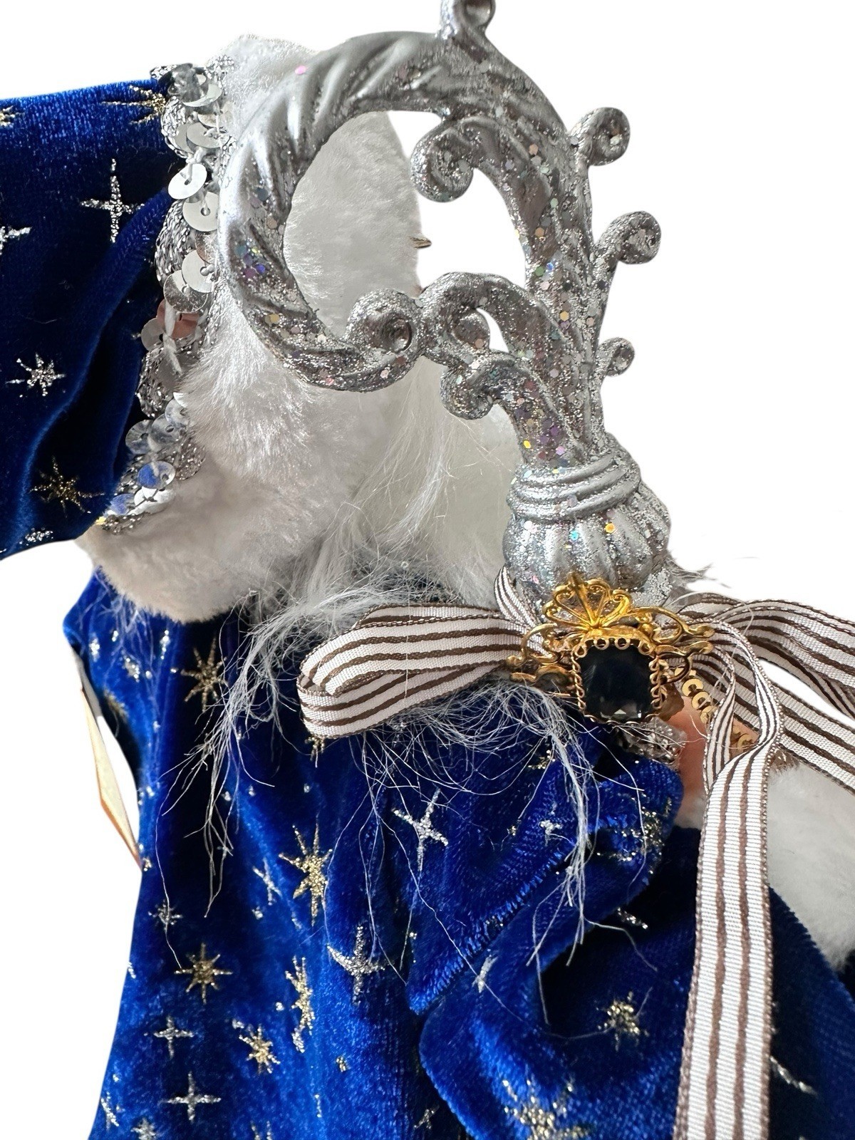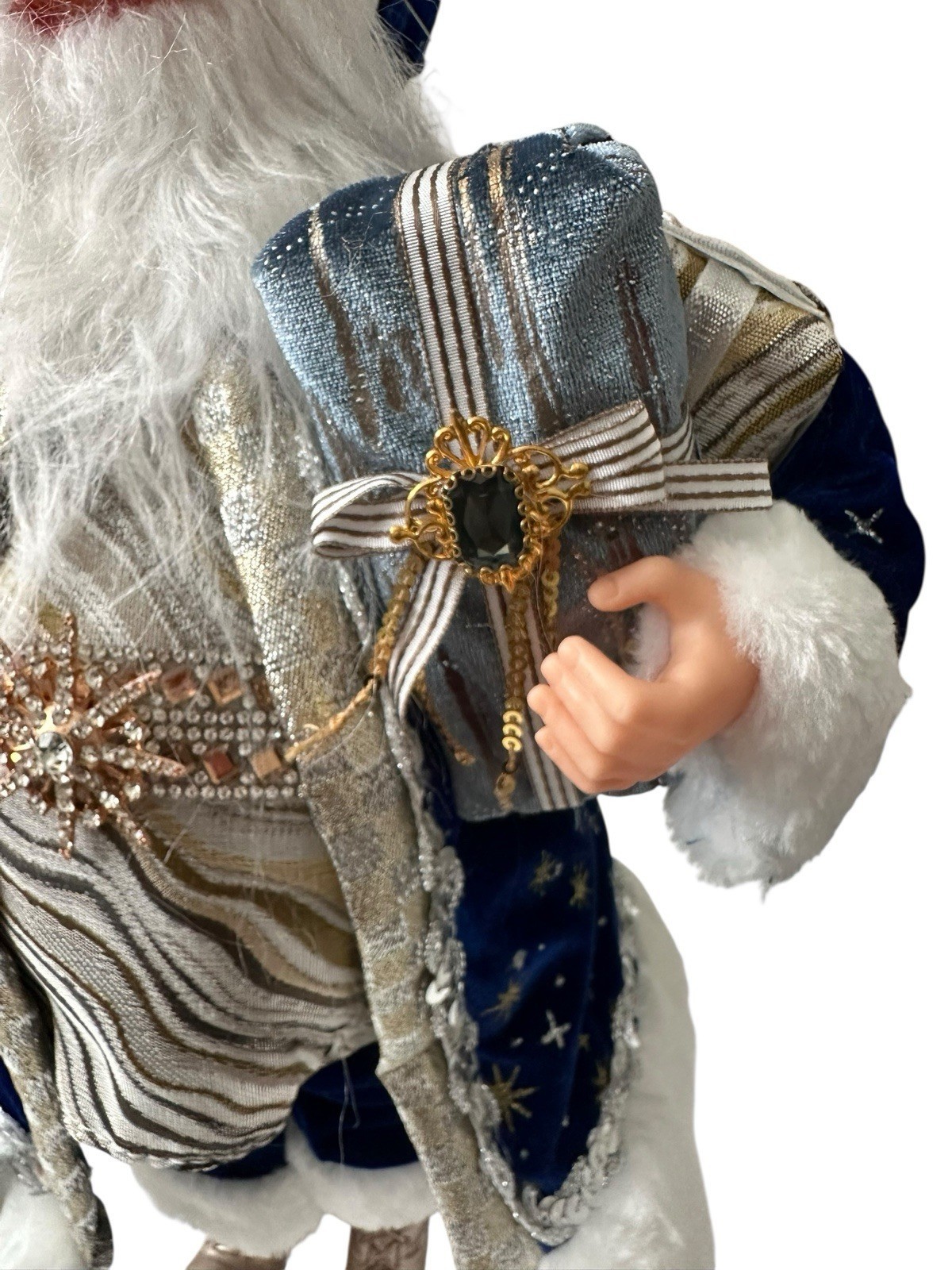Windy Hill Collection Santa Claus Figure 16.5’’ Holding Gift And Staff Blue Gold