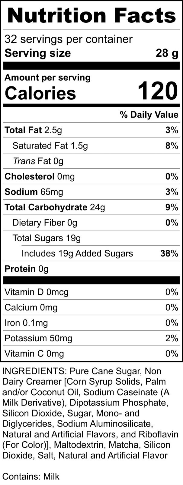 Authentic Cafe-Style Matcha Latte ? Smooth, creamy blend of real matcha, non-dairy creamer, and pure cane sugar for an indulgent latte at home or in cafes.