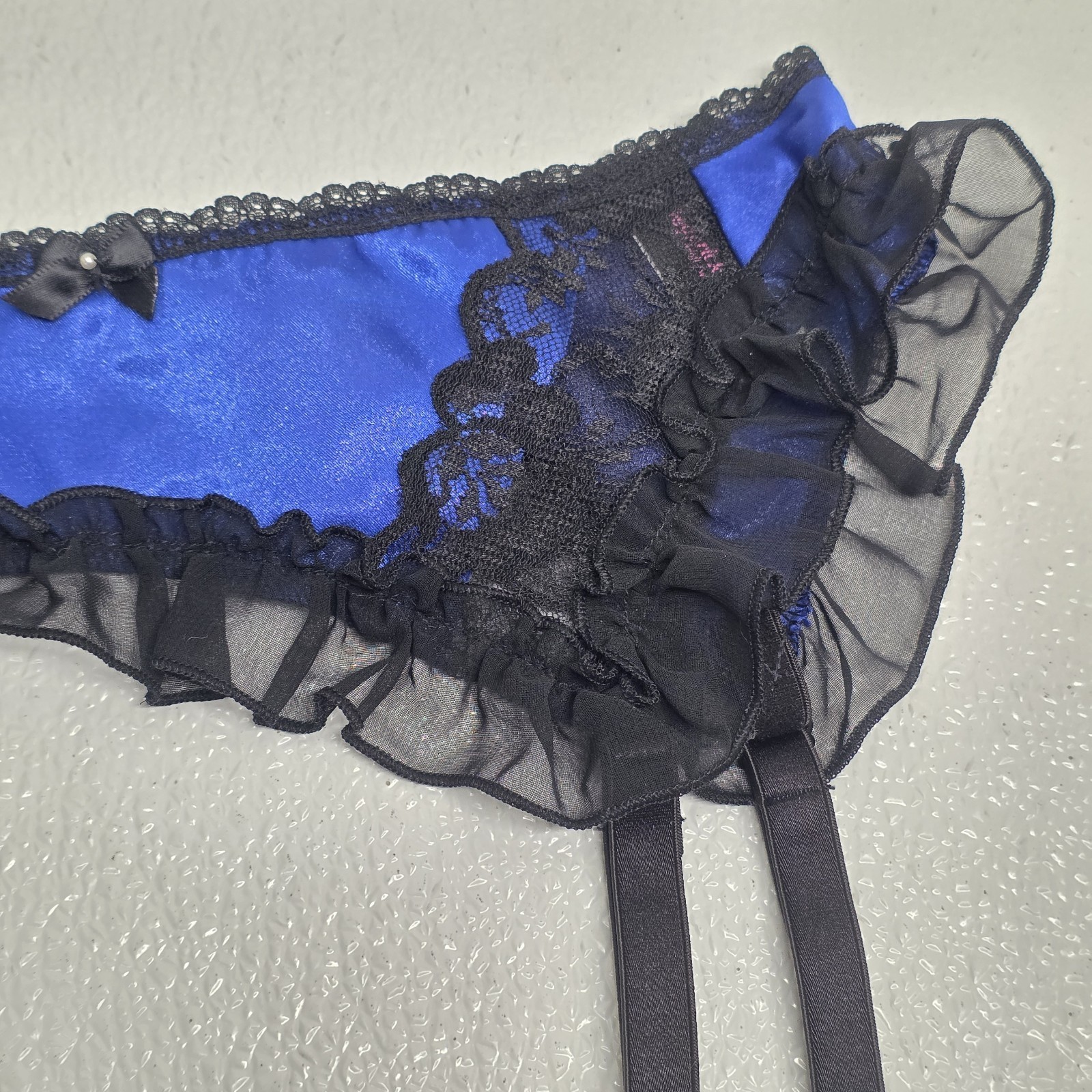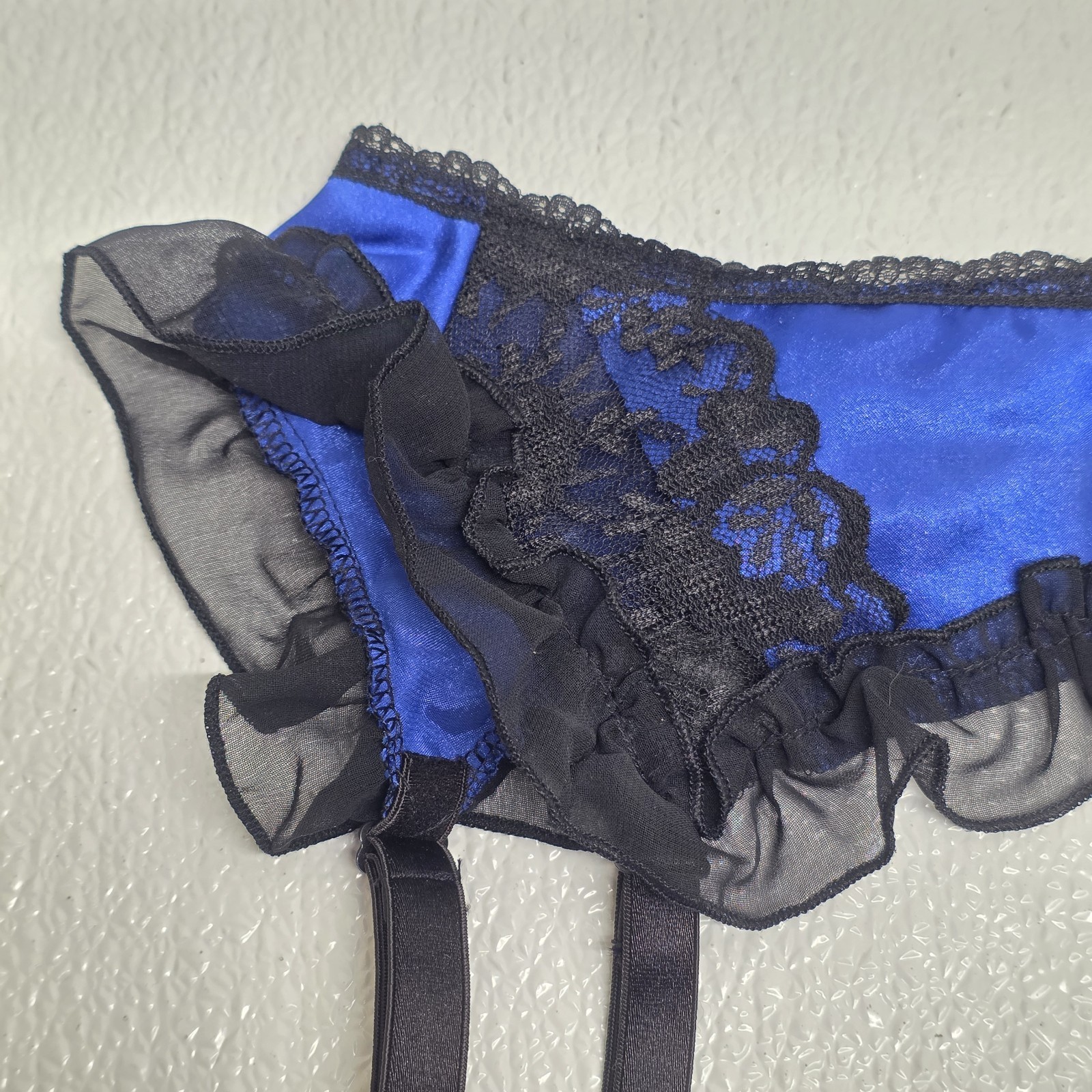Vintage Frederick’s Of Hollywood Lace Garter Belt Lingerie Blue & Black One Size