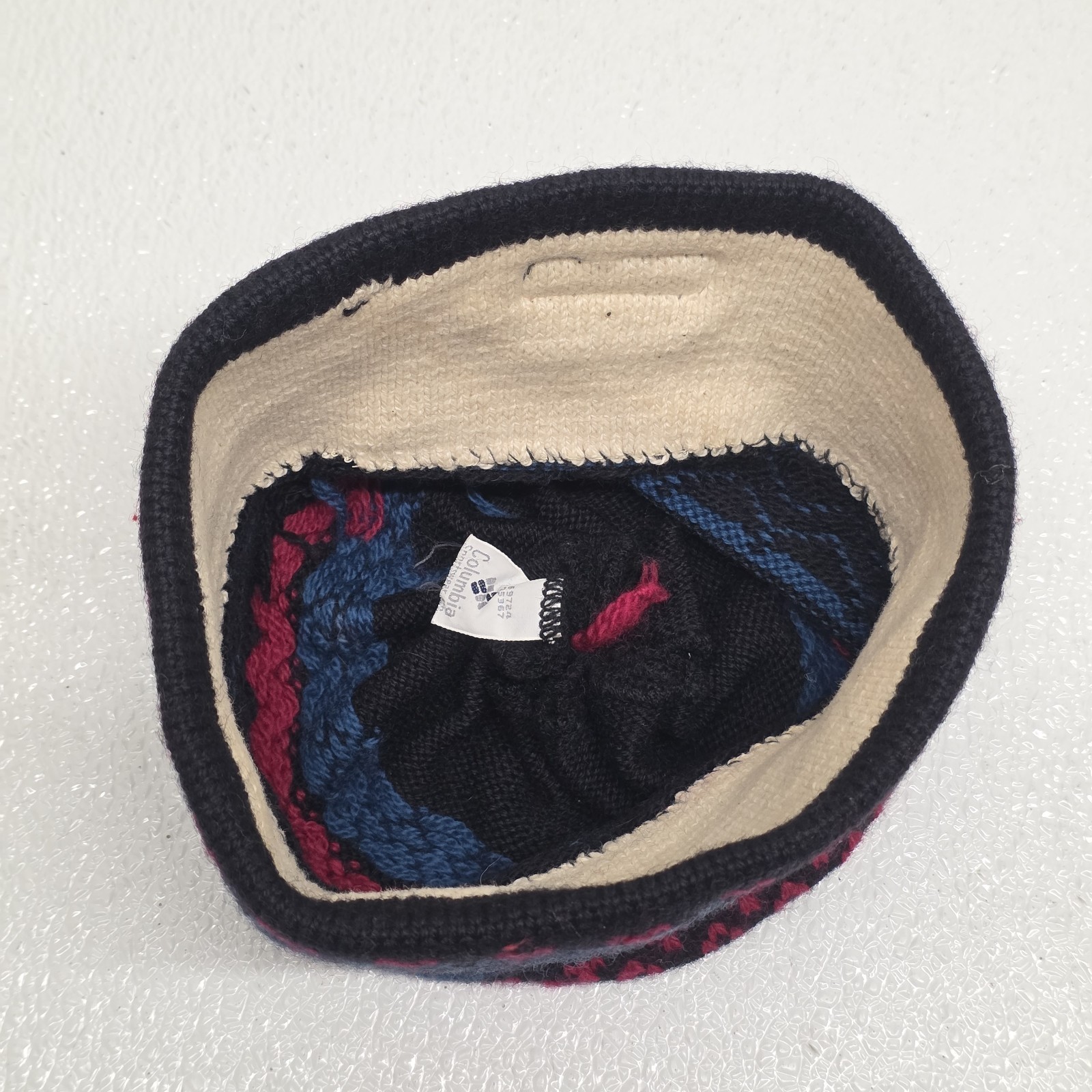 Vintage Columbia Knit Winter Cap Beanie Hat Women's Small Medium Black Red Blue. Images show actual item that will ship.