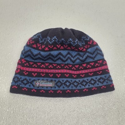 Vintage Columbia Knit Winter Cap Beanie Hat Women's Small Medium Black Red Blue