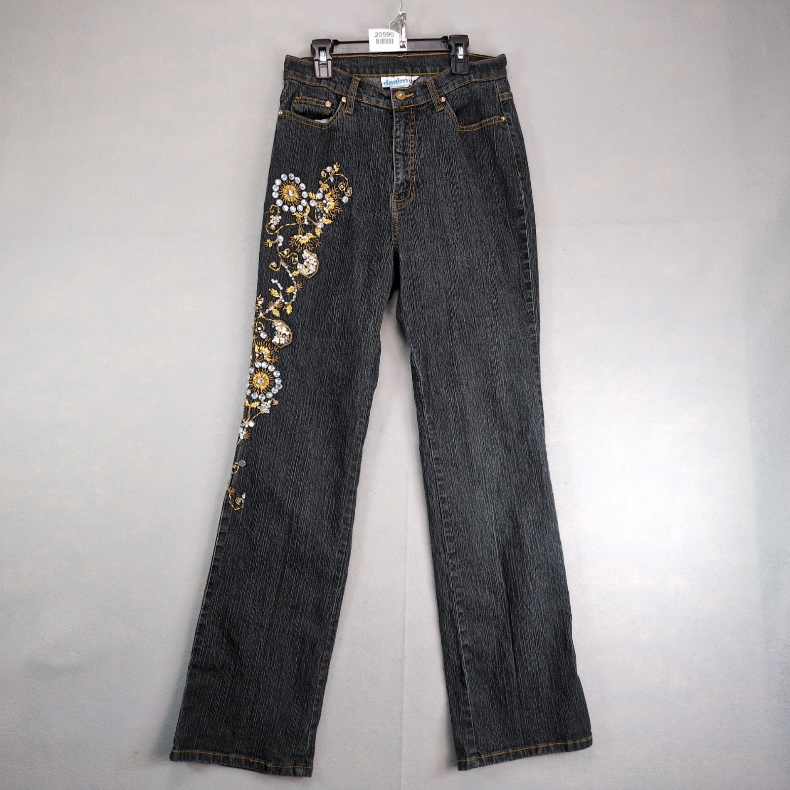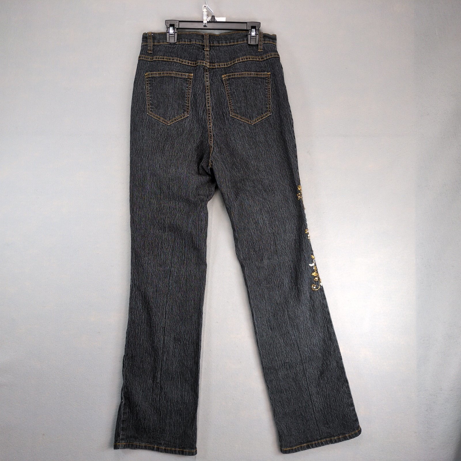 Denim 24/7 Gold Embellished Jeans Women's 12T 27x32" Black Stretch Straight Wide