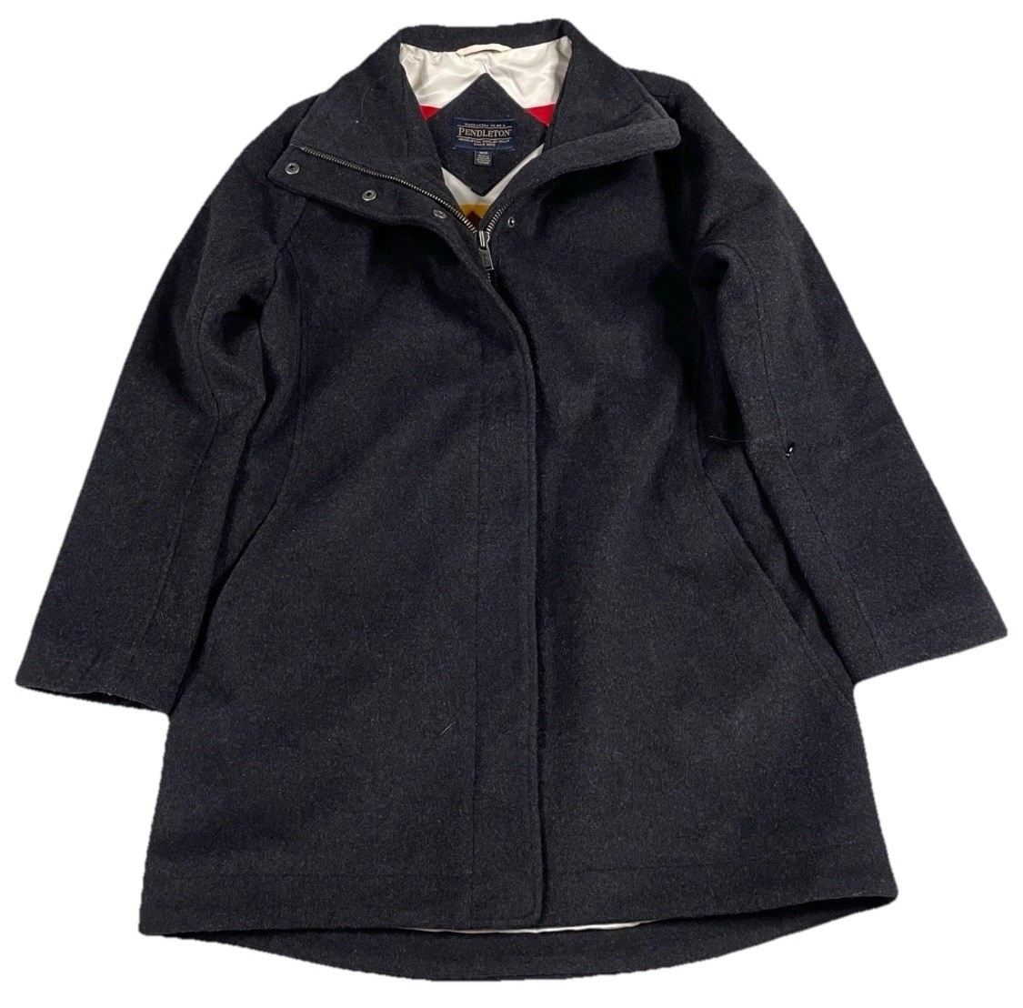 Pendleton Cascade Glacier Coat Size M Women Gray Wool Hudson Bay Striped Lining