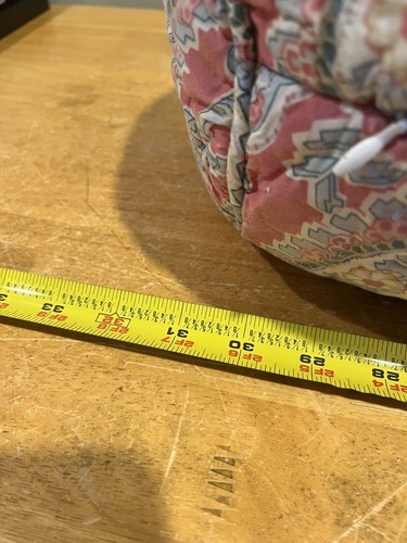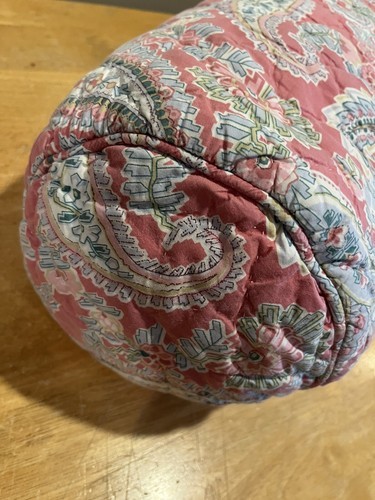 This is a Pottery Barn Jane Paisley Bolster Cover in pink and multi-color, made of 100% cotton. It has a hidden zipper and measures 12 inches in height and 32 inches in length, fitting a bolster size of 12 x 39 inches. Suitable for any room, especially the bedroom.