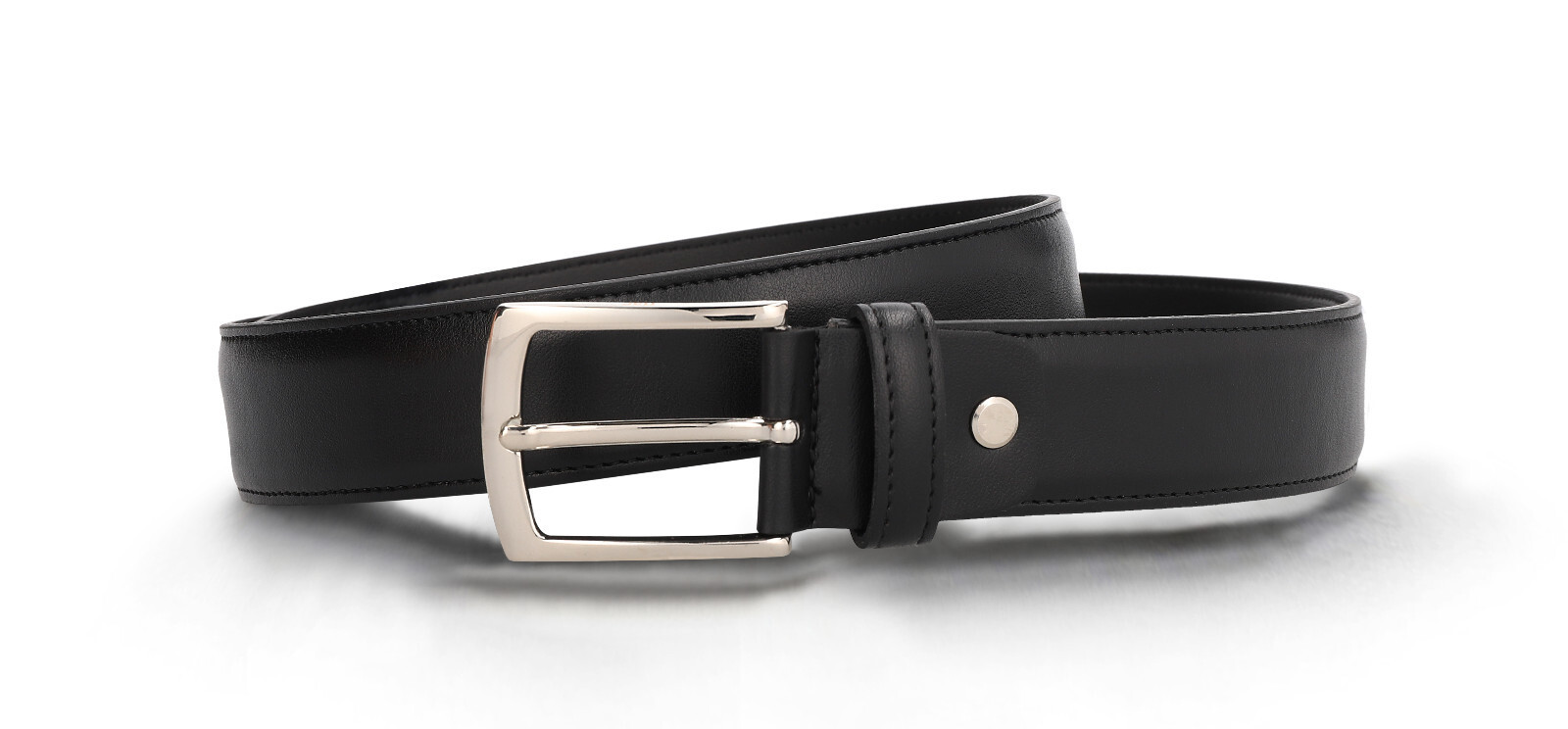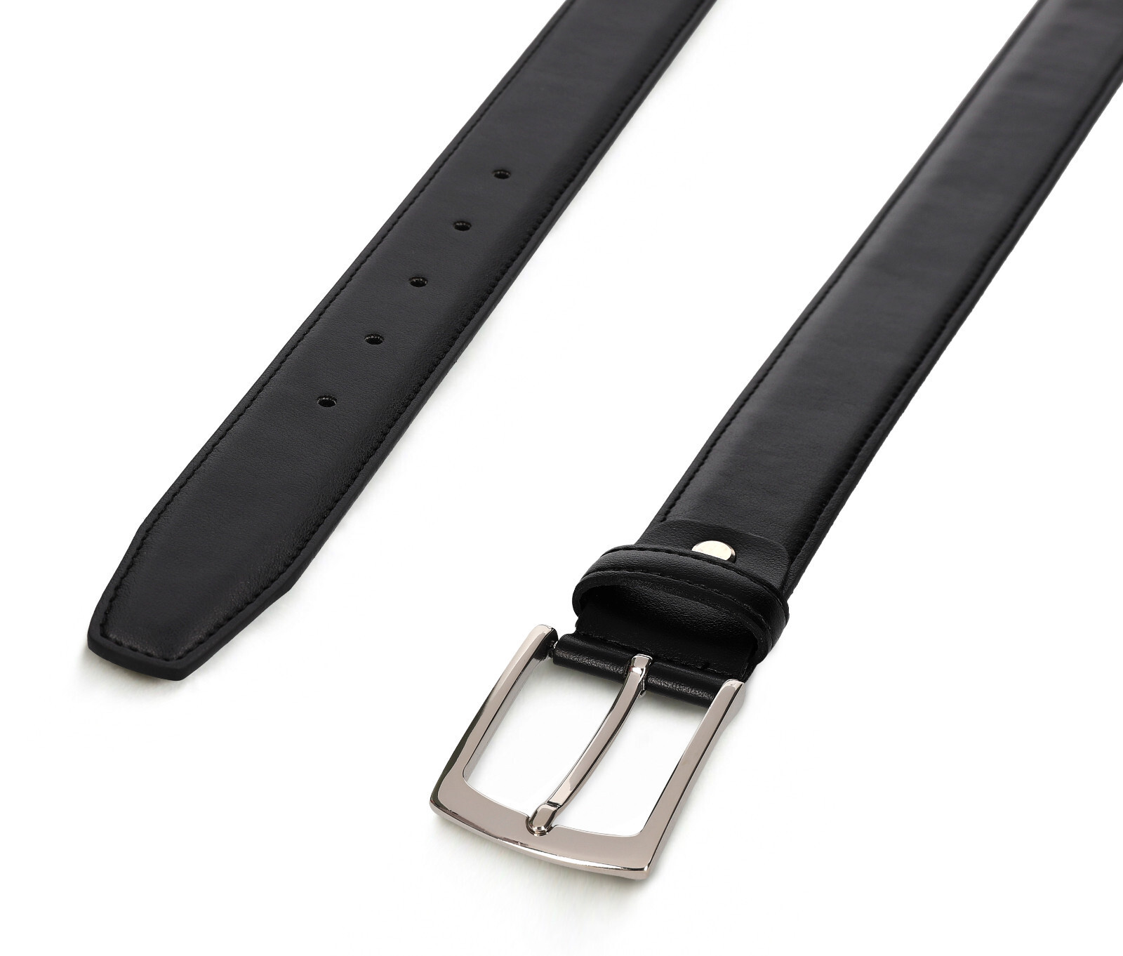 Herren Gürtel aus Schwarz Apple Skin vegane Anzug karree Schnalle konisch Spitze