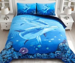 DOLPHINS BLUE BLANKET WITH SHERPA VERY SOFTY THICK & WARM 3 PCS KING SIZE