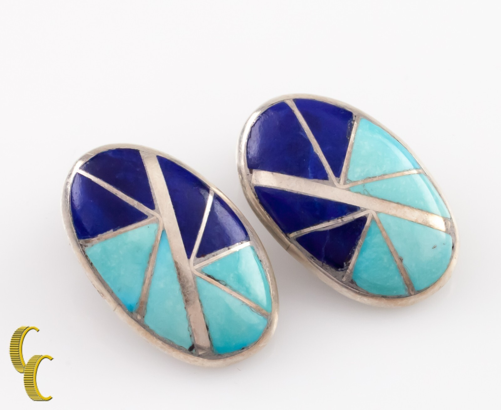 Sterling Silver Lapis and Turquoise Inlay Clip-On Earrings Gorgeous!