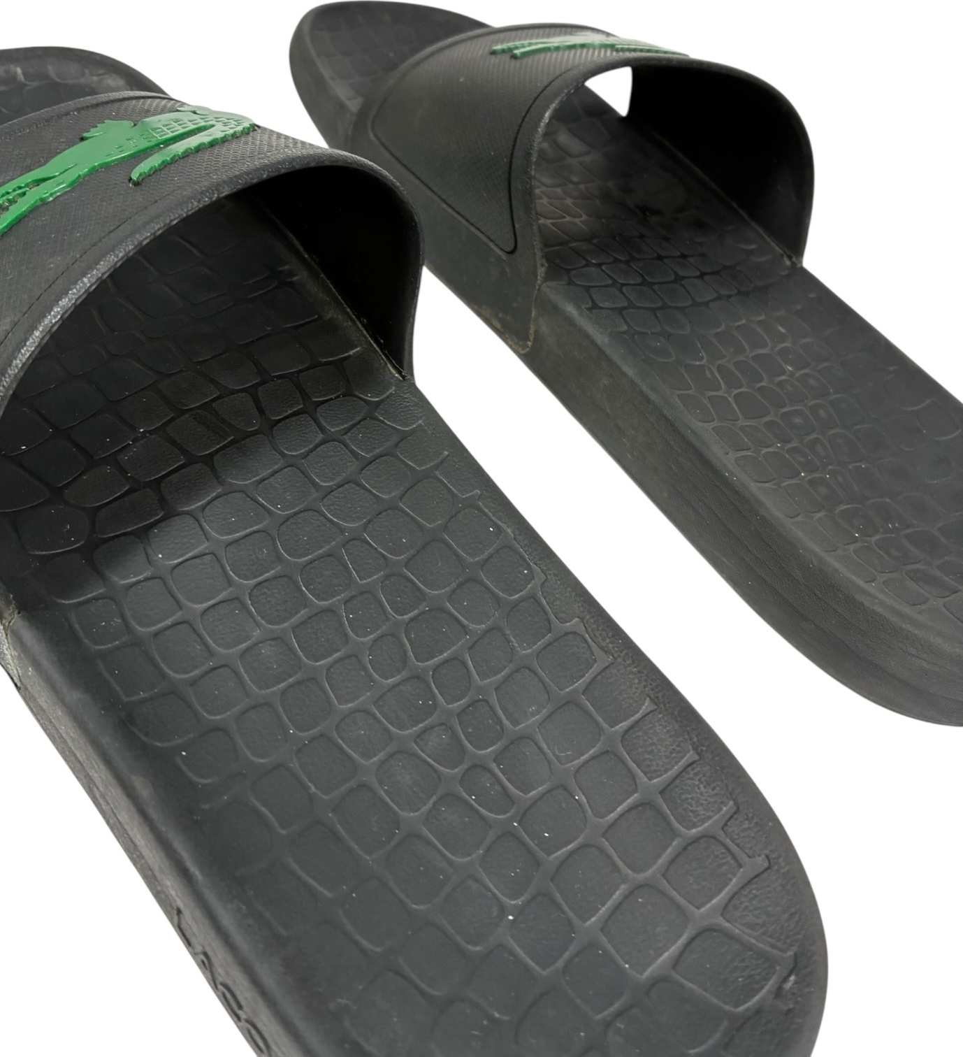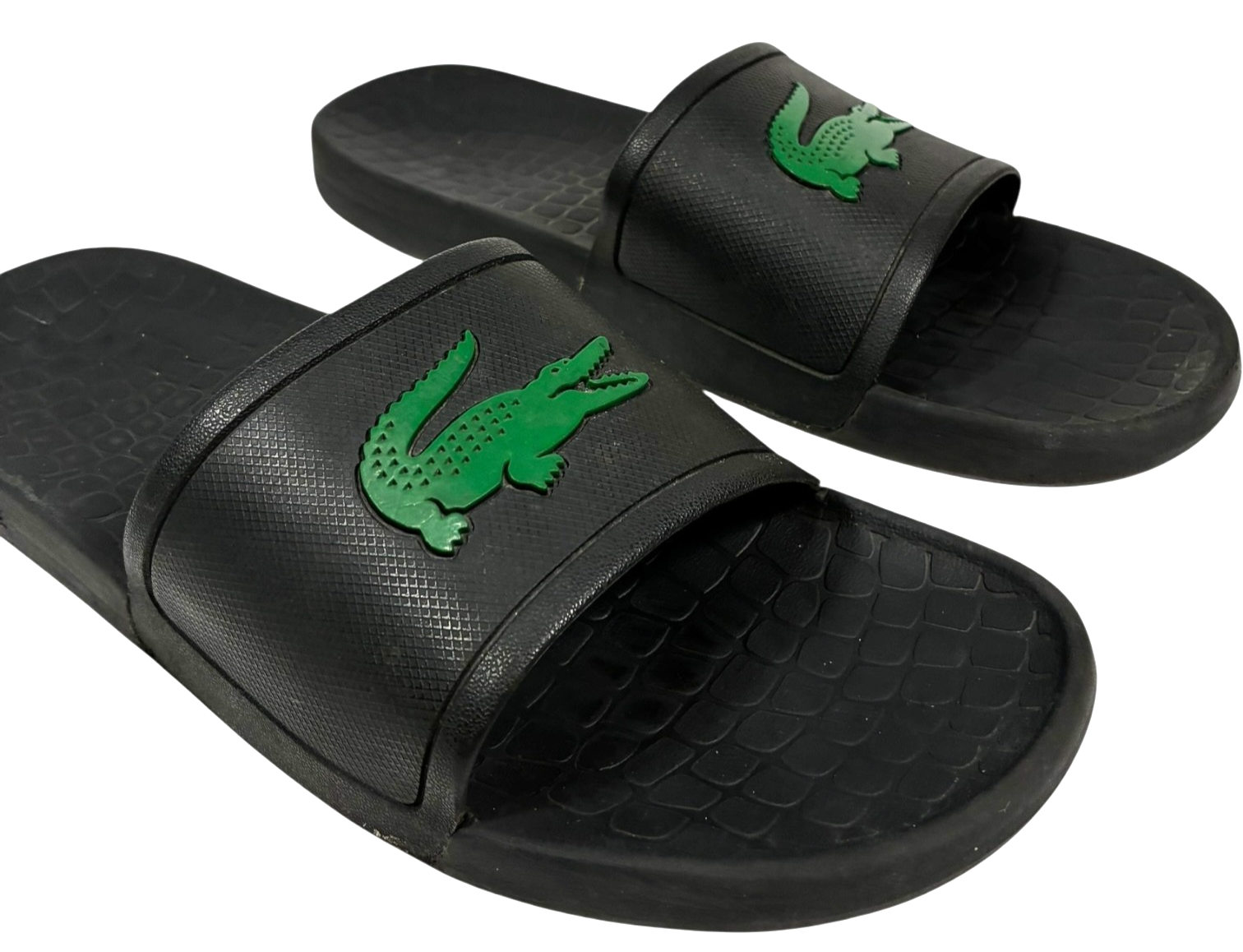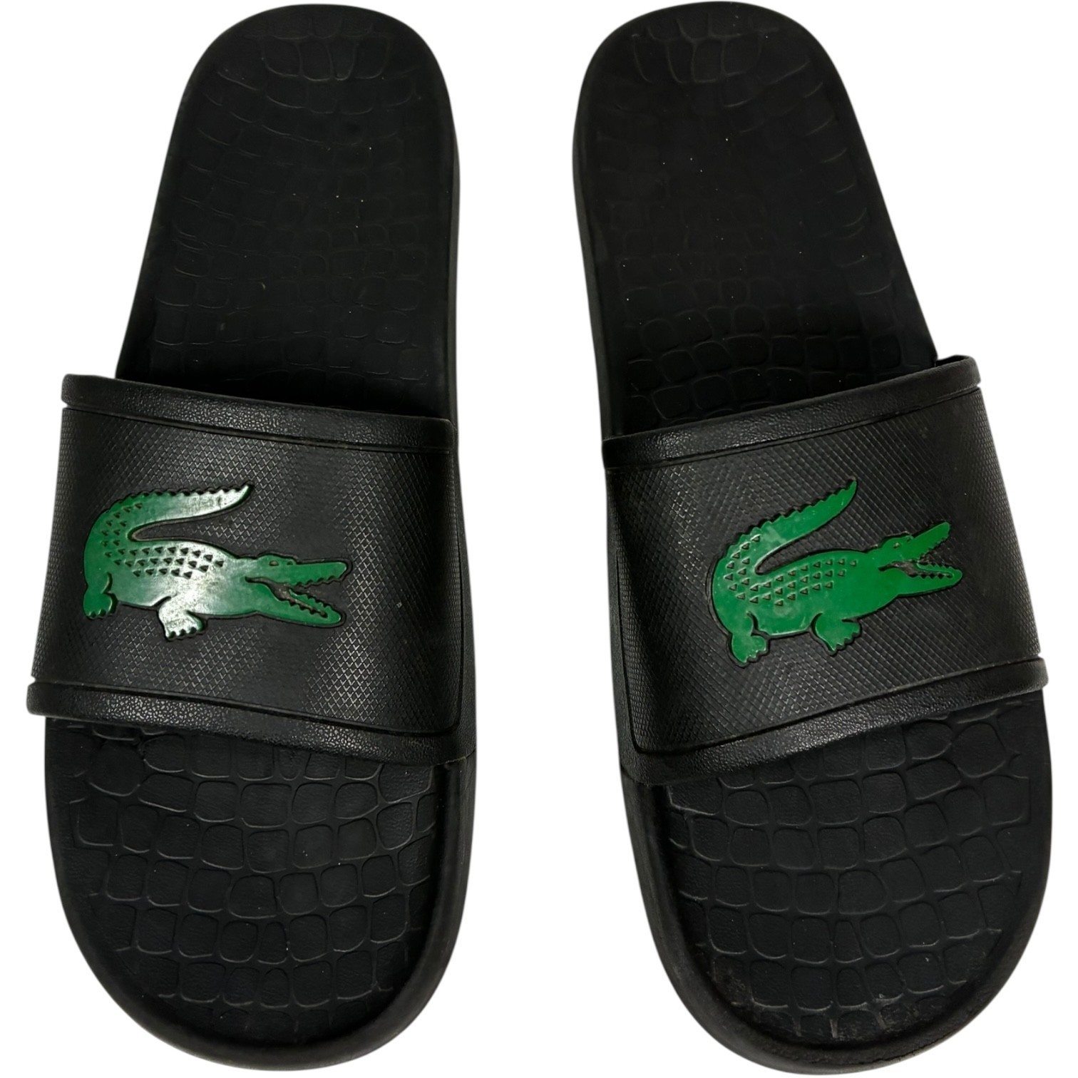 Lacoste Fraisier Black Slides with Big Green Croc Logo men's sandals size 13-14
