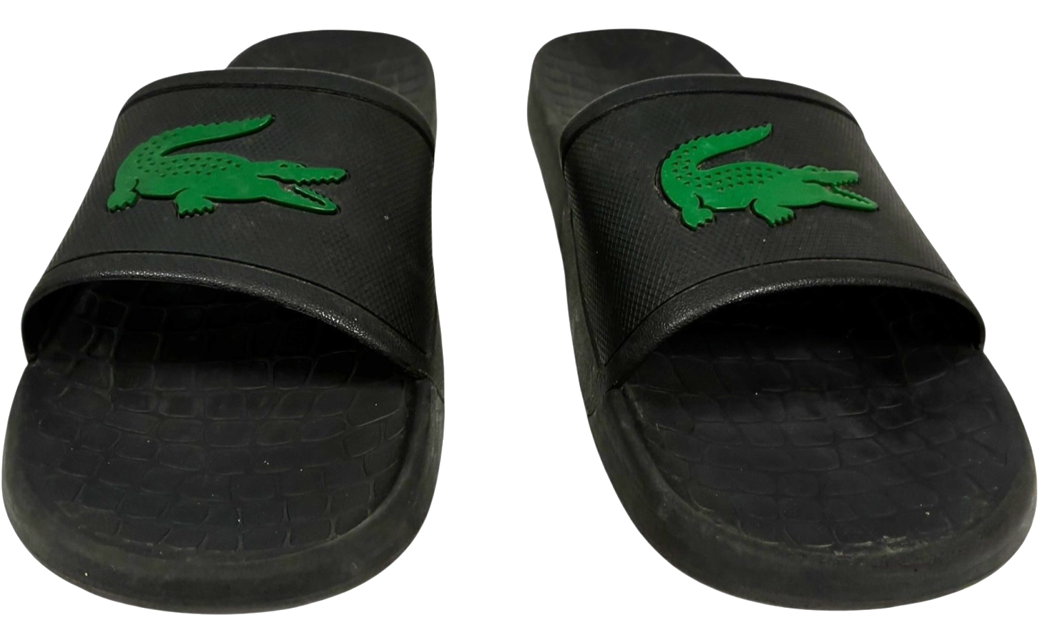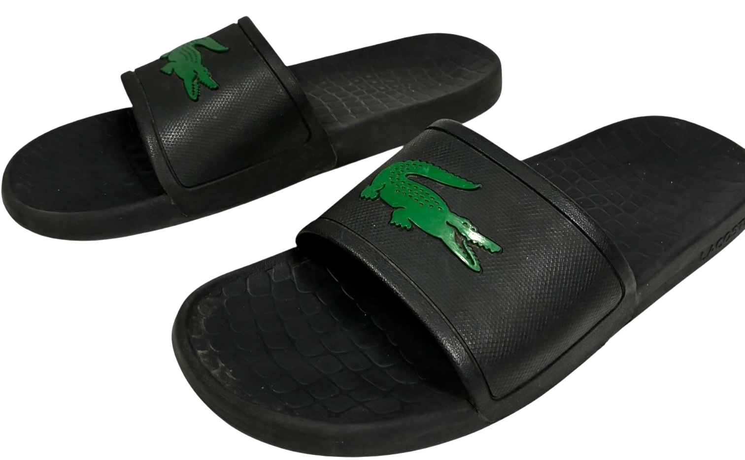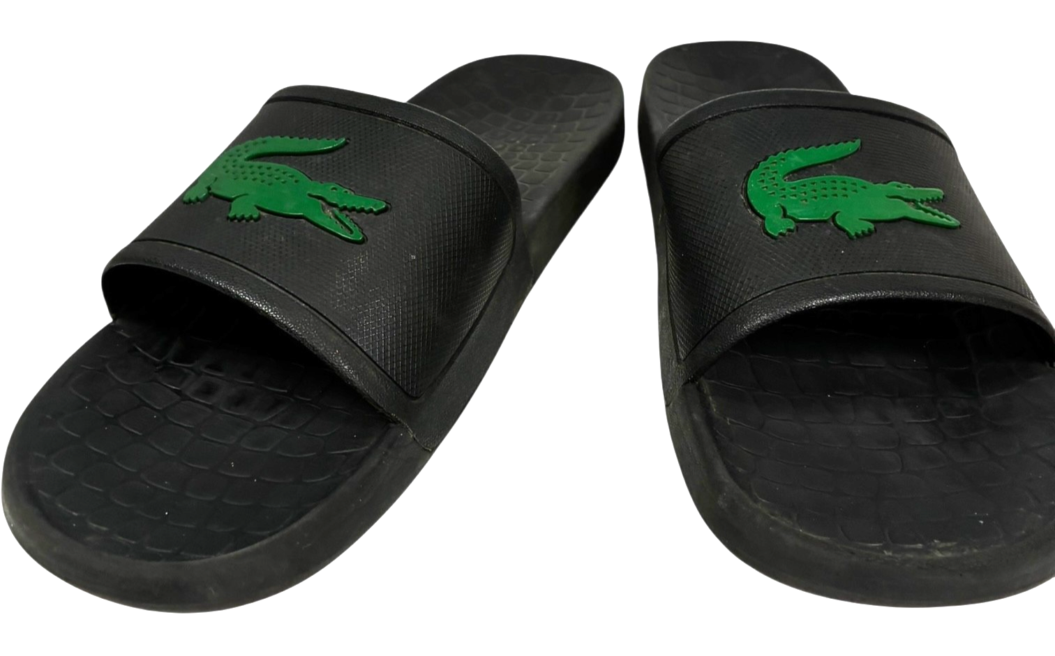 Lacoste Fraisier Black Slides with Big Green Croc Logo men's sandals size 13-14
