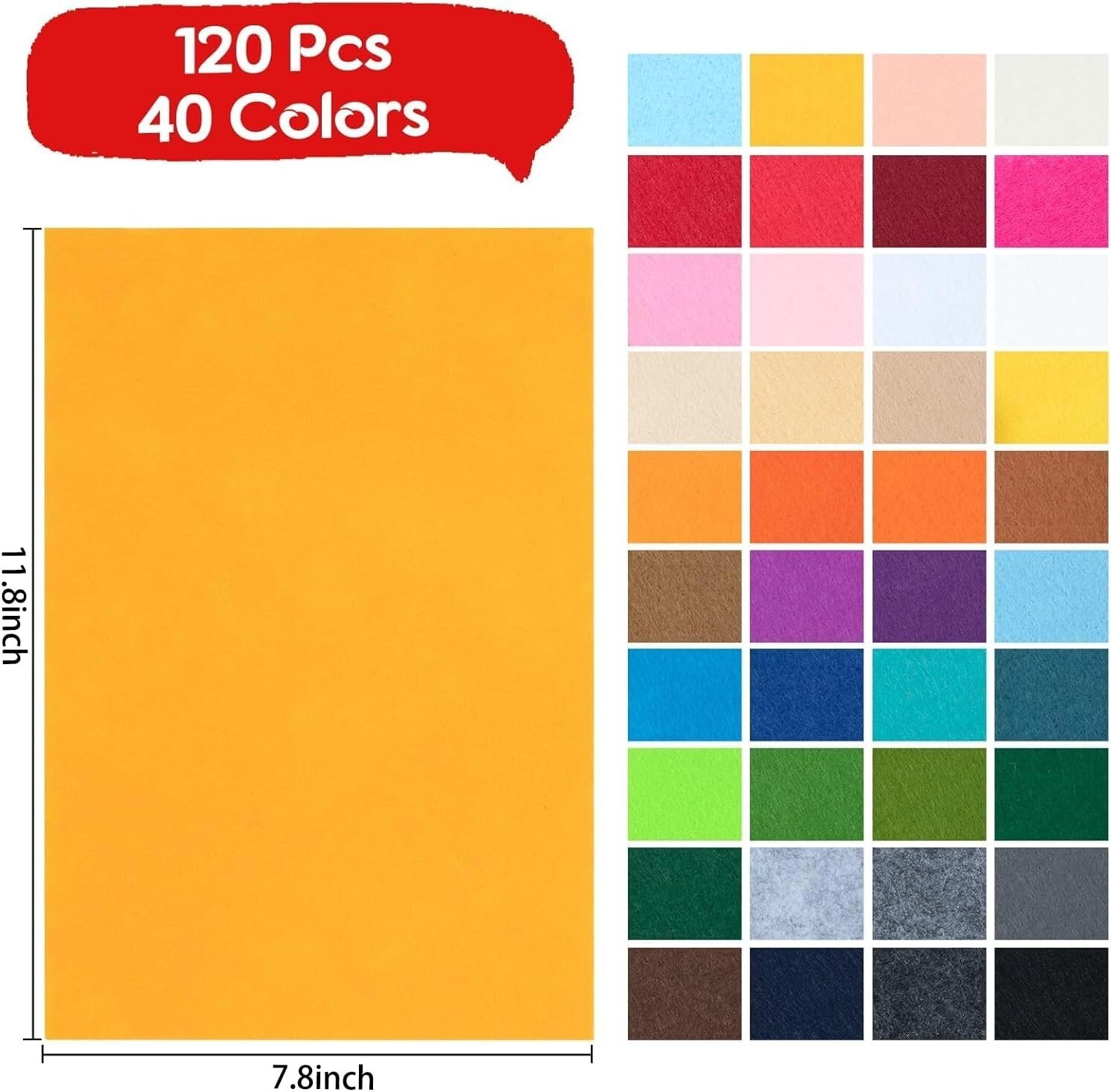 Discover our craft felt, crafted from durable polyester and acrylic non-woven fabric that resists fading, making it perfect for school projects and toy-making. Each sheet measures 7.8" x 11.8" (20cm x 30cm) with a 1mm thickness, ideal for a variety of crafts. Available in a vibrant palette of 40 colors, you'll receive 120 assorted color felt squares?one of each hue plus 80 repeating colors. Our felt is easy to cut into precise shapes without fraying, and can be sewn or ironed for versatile use in toy creation, decorations, bulletin boards, and more. Elevate your crafting with high-quality, colorful felt that meets all your creative needs.