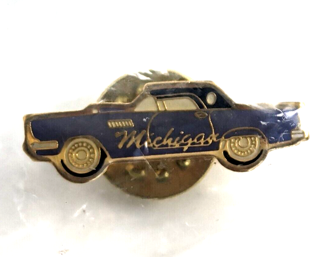 Michigan Ford Thunderbird Classic Car Souvenir Enamel Pin Travel State Auto VTG