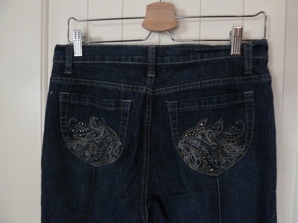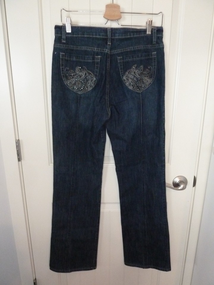Zena Jeans Womens Size 8 Bootcut High Rise Stretch Blue Denim Embellished Pocket