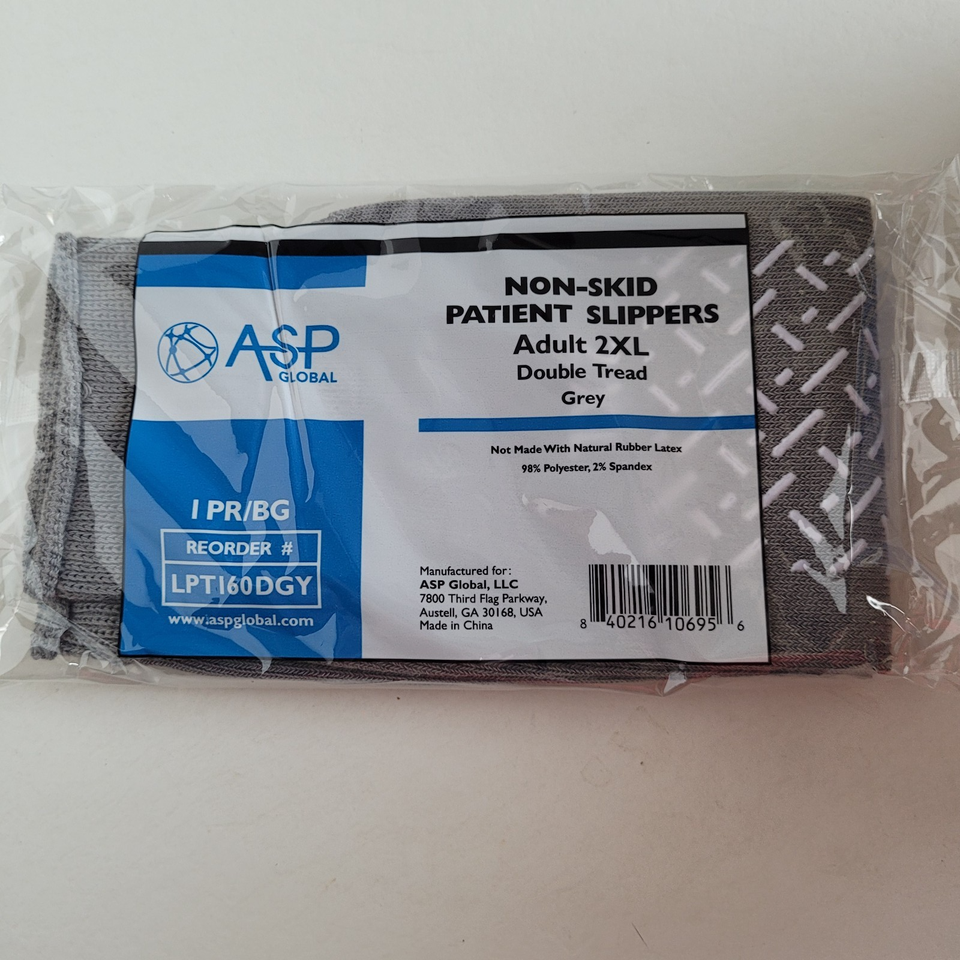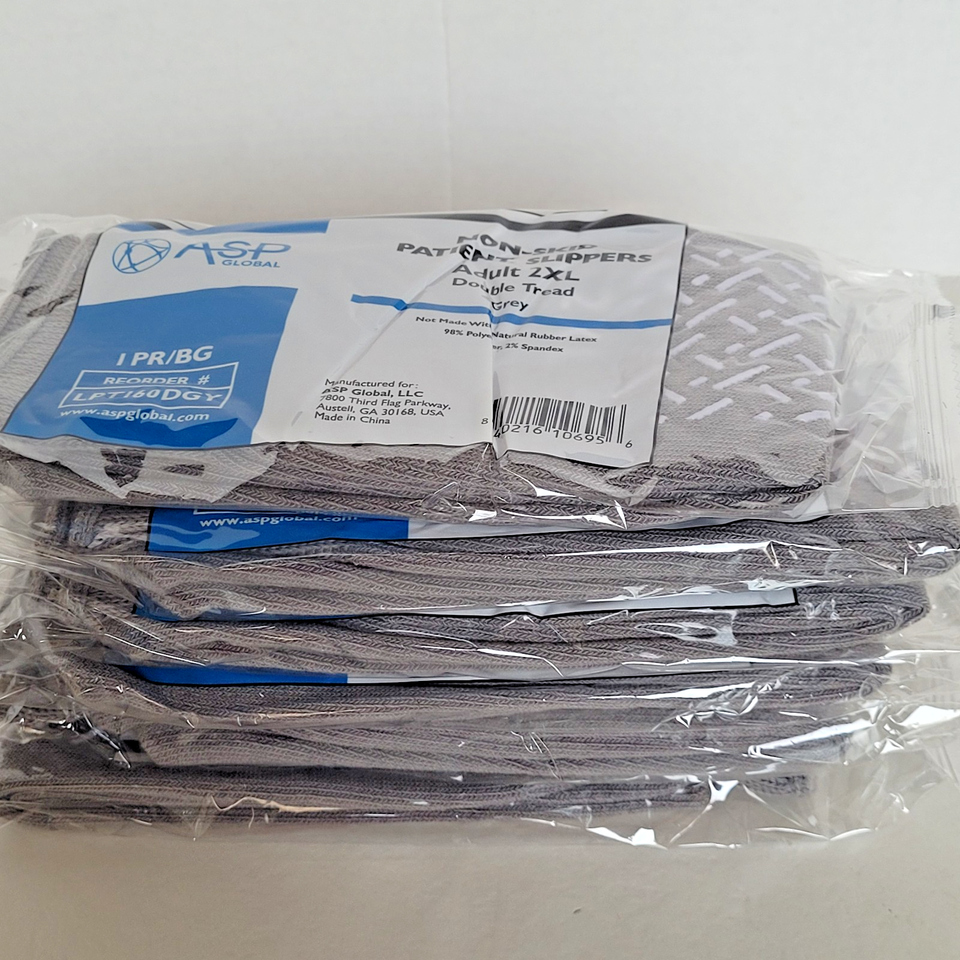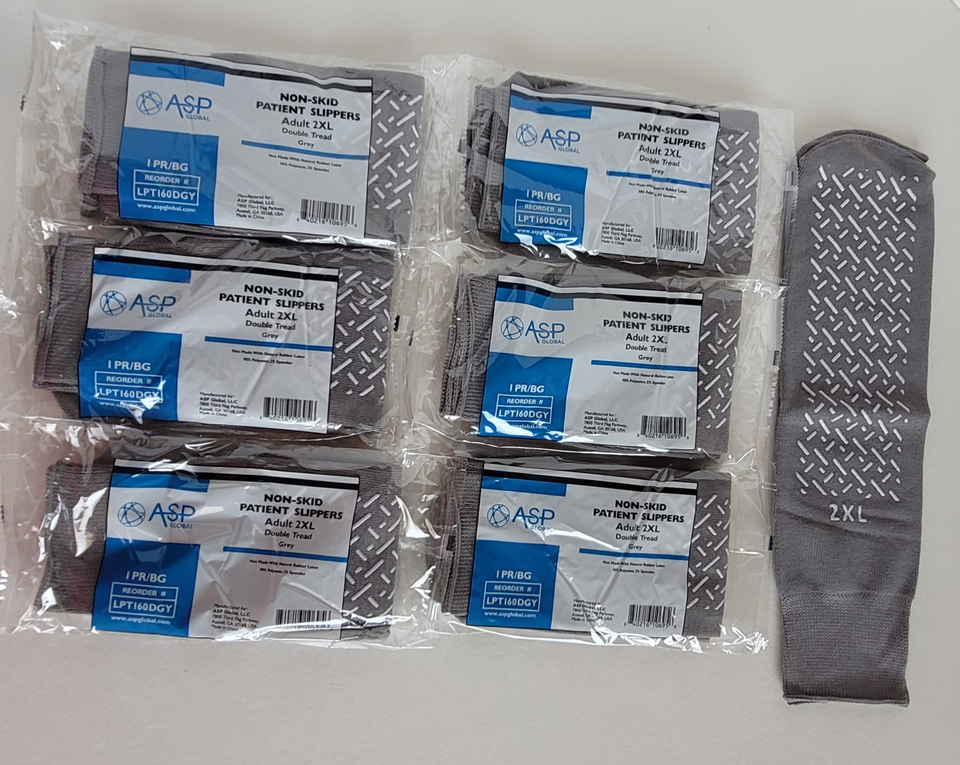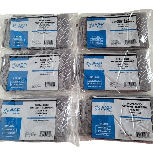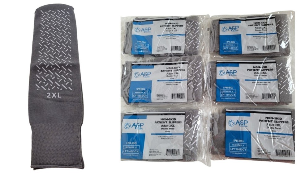 6 Pairs ASP Non-Skid Double Tread Patient Slipper Socks ADULT 2XL Grey 6 PACK