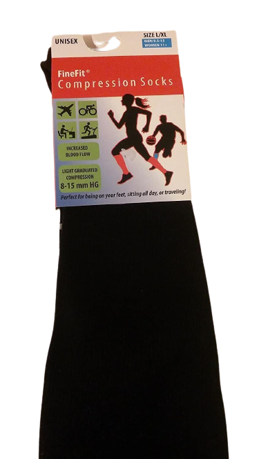 FineFit Compression Socks Light Graduated Compression 8-15 mm HG Black L/XL