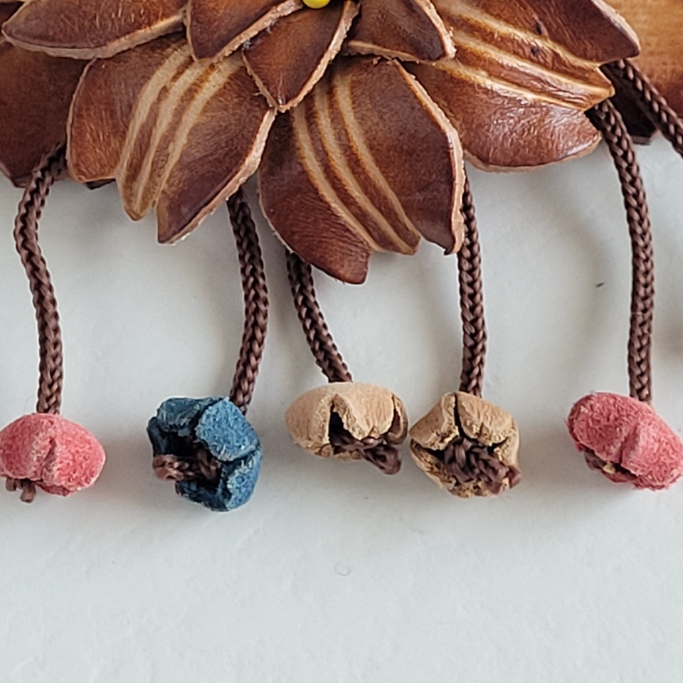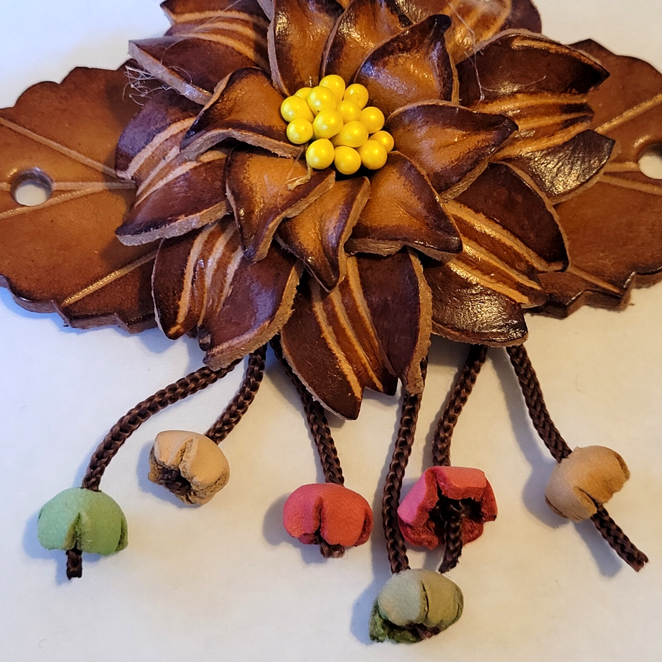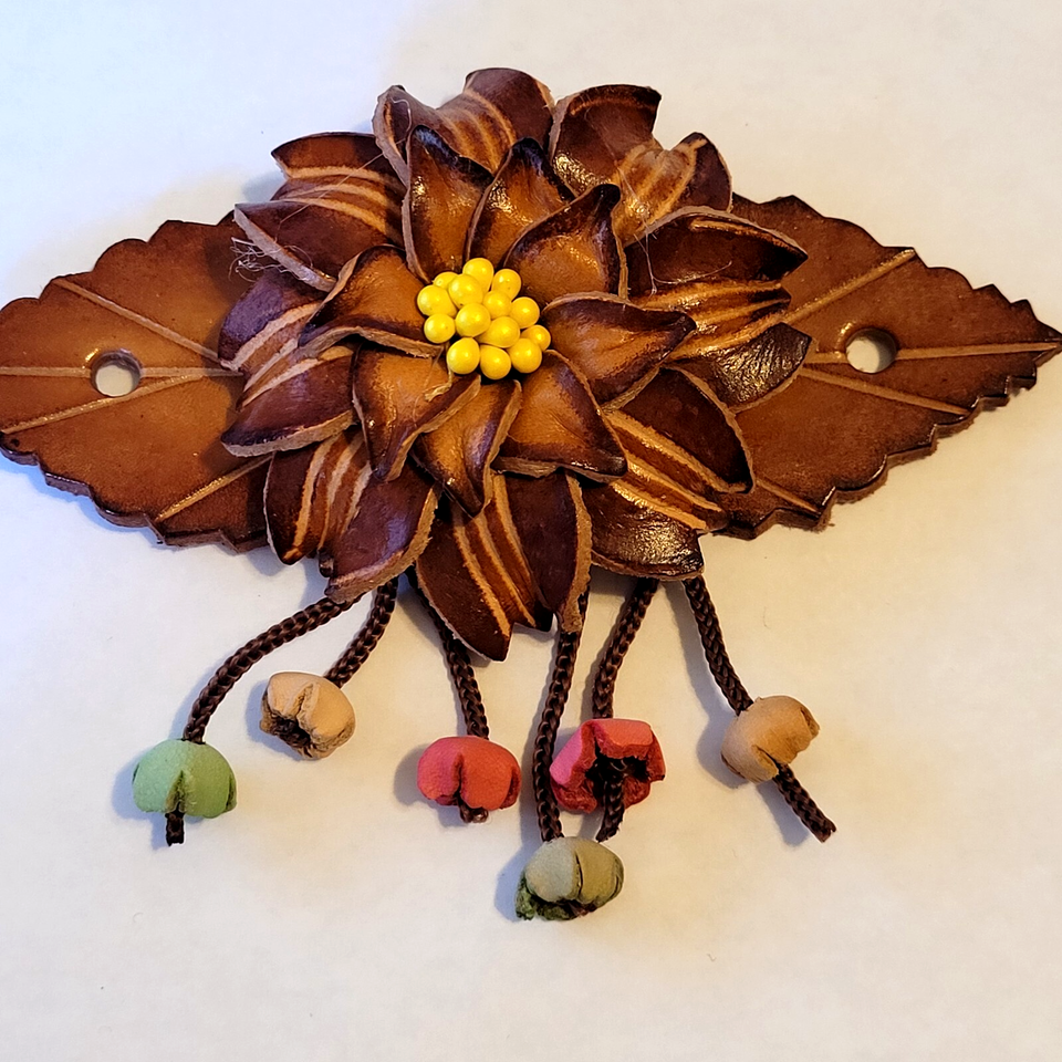 Leather Barrette Hair Clip & Wood Stick Ponytail Holder Flower Boho Pony