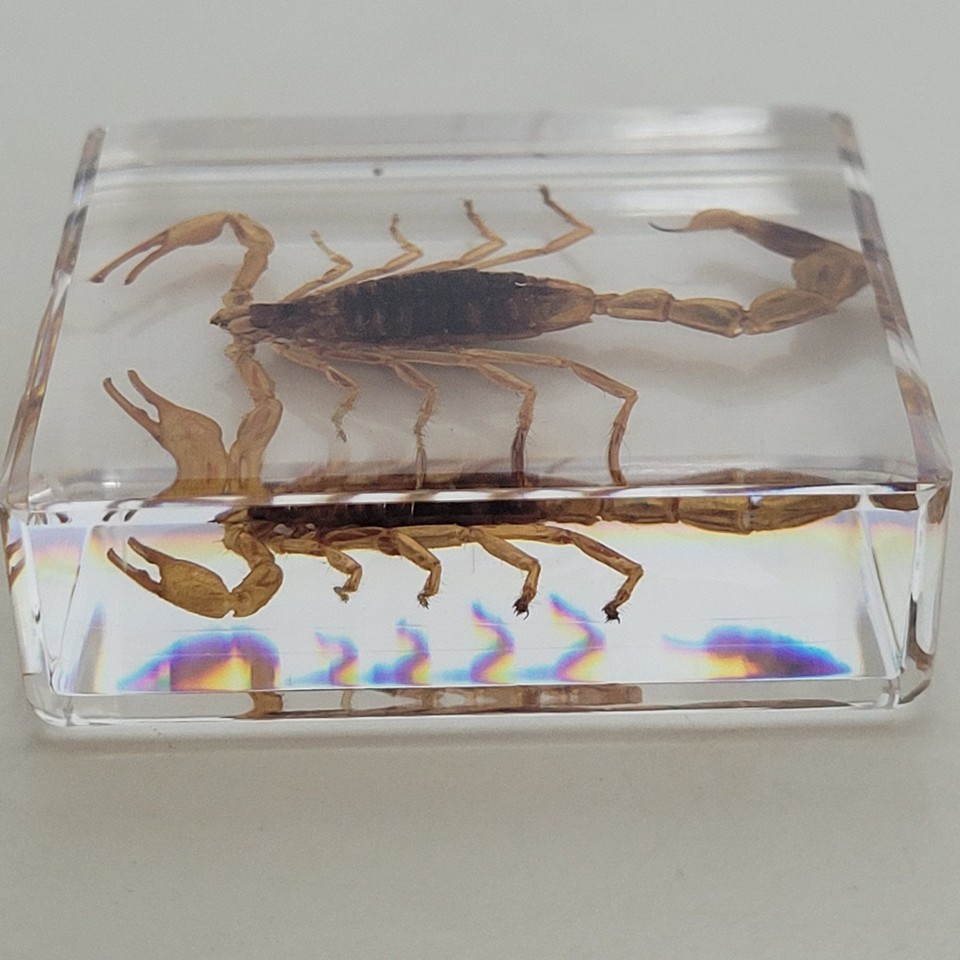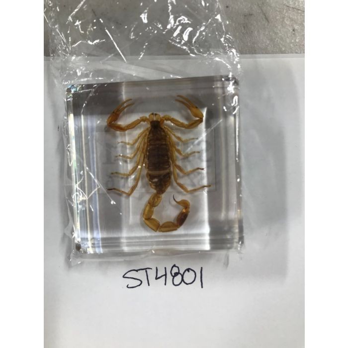 Golden Scorpion Paperweight Real Scorpion Encased In A Clear Square Shaped Enclosure