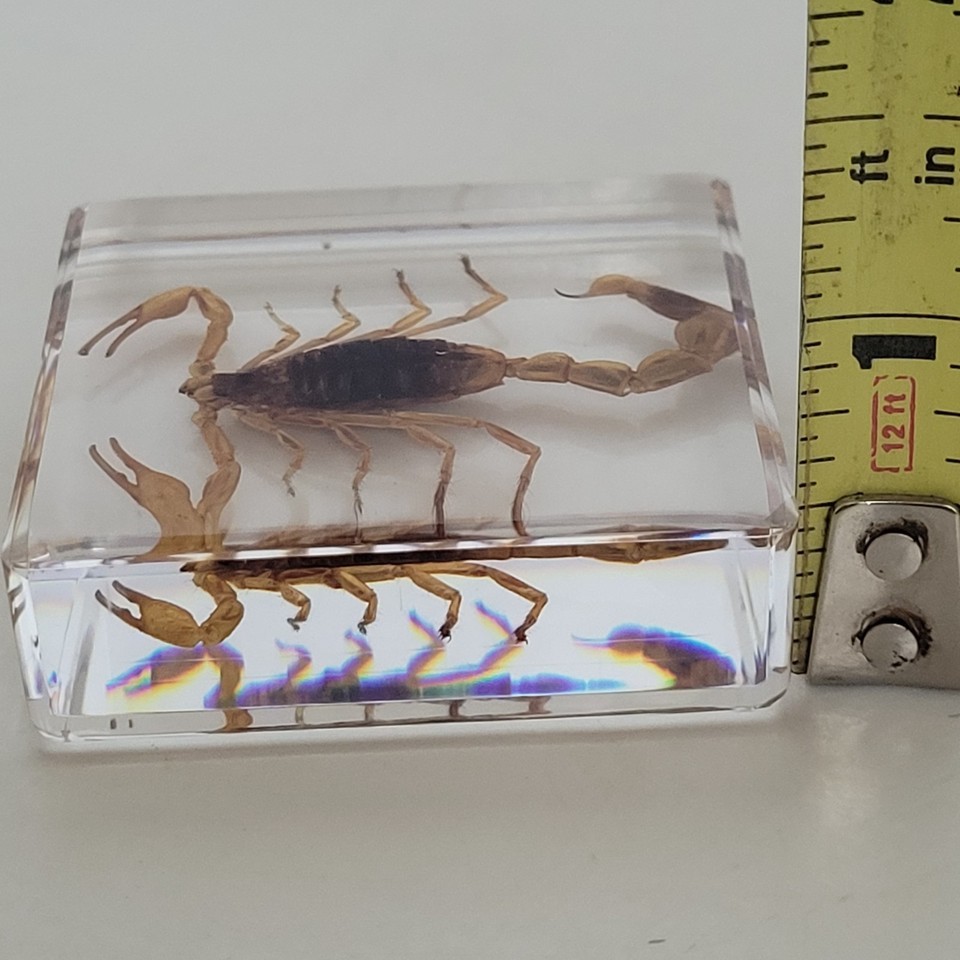 Real GOLDEN SCORPION Genuine INSECT Paperweight Lucite Paper Weight Small