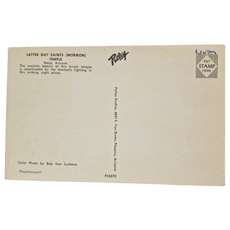 Postcard Mormon Temple Latter Day Saints Mesa Arizona Night Time Chrome Unposted