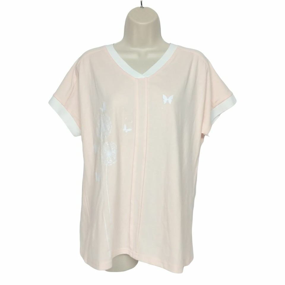Sheilay Blouse Top Size Large Orange Butterfly Dandelion V Neck Short Sleeve