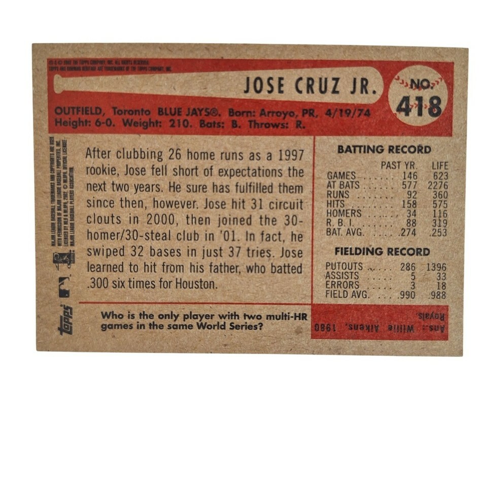 2002 Bowman Heritage Jose Cruz Jr #418 Toronto Blue Jays MLB Baseball Card