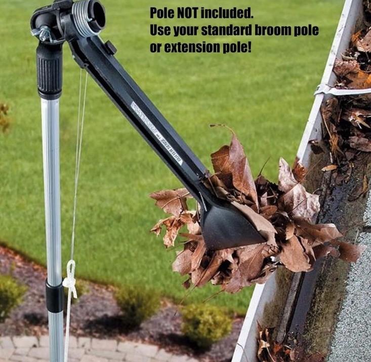 Fits on an ordinary extension pole, or standard handle. Tongs run flat in gutter even if pole is slightly tilted