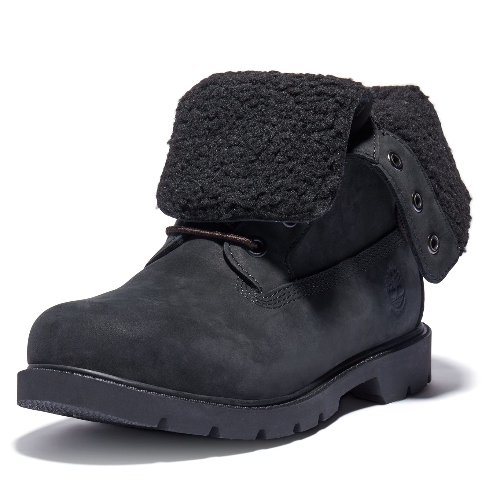 Timberland Women's Linden Woods Waterproof Fleece Fold-Down Boots, Black Nubuck,
