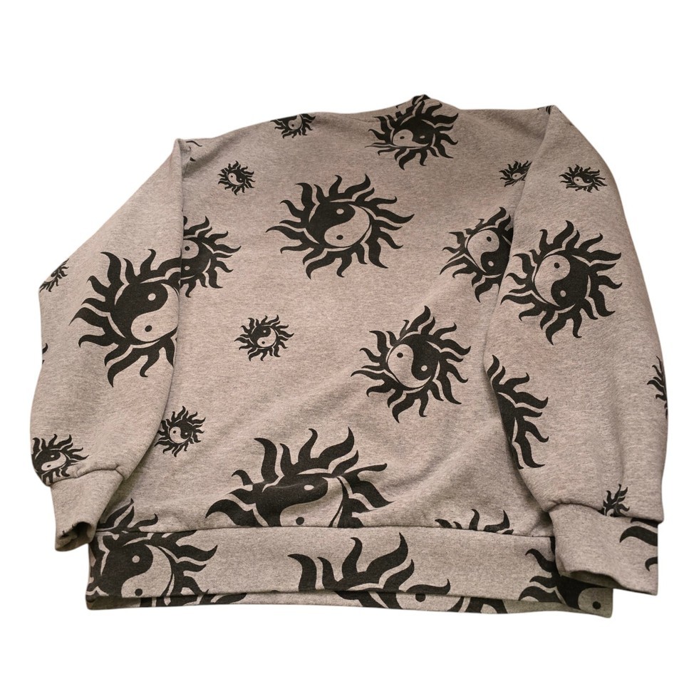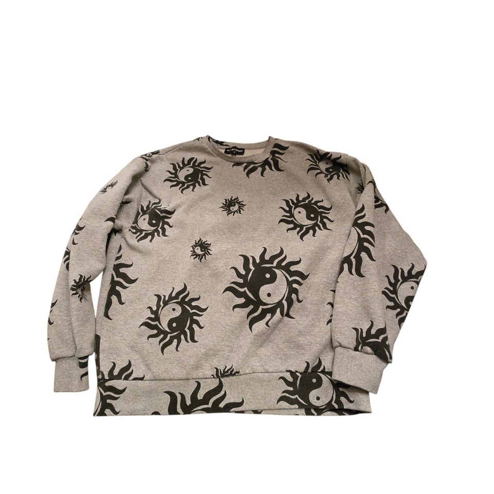 New Girl Order Gray & Black Ying Yang Oversized Sweatshirt Women's Size 6 Trendy