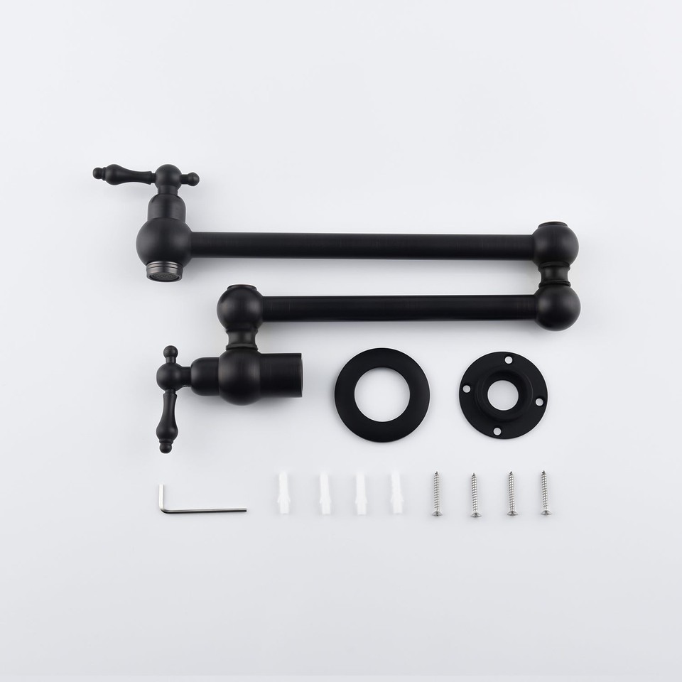 The pot filler faucet features a free-swivel arm design, making it easier to fill any pot on the stovetop and for easier cleaning.