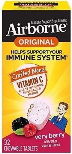 Airborne Immune Support Supplement Chewable Tablets Very Berry 32 Ct EXP. 10/26