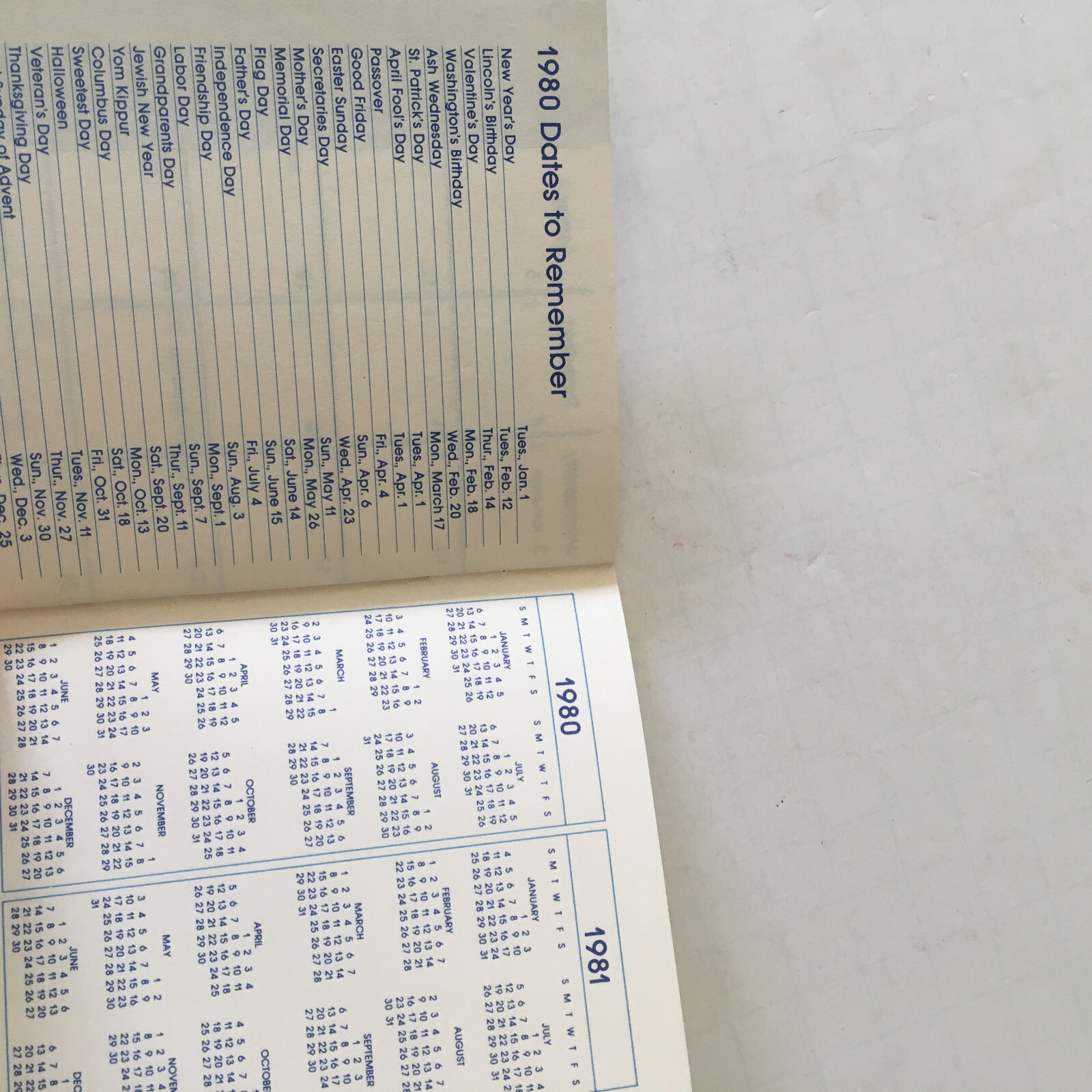 1980 Hallmark date book small calendar booklet butterfly graphics on cover