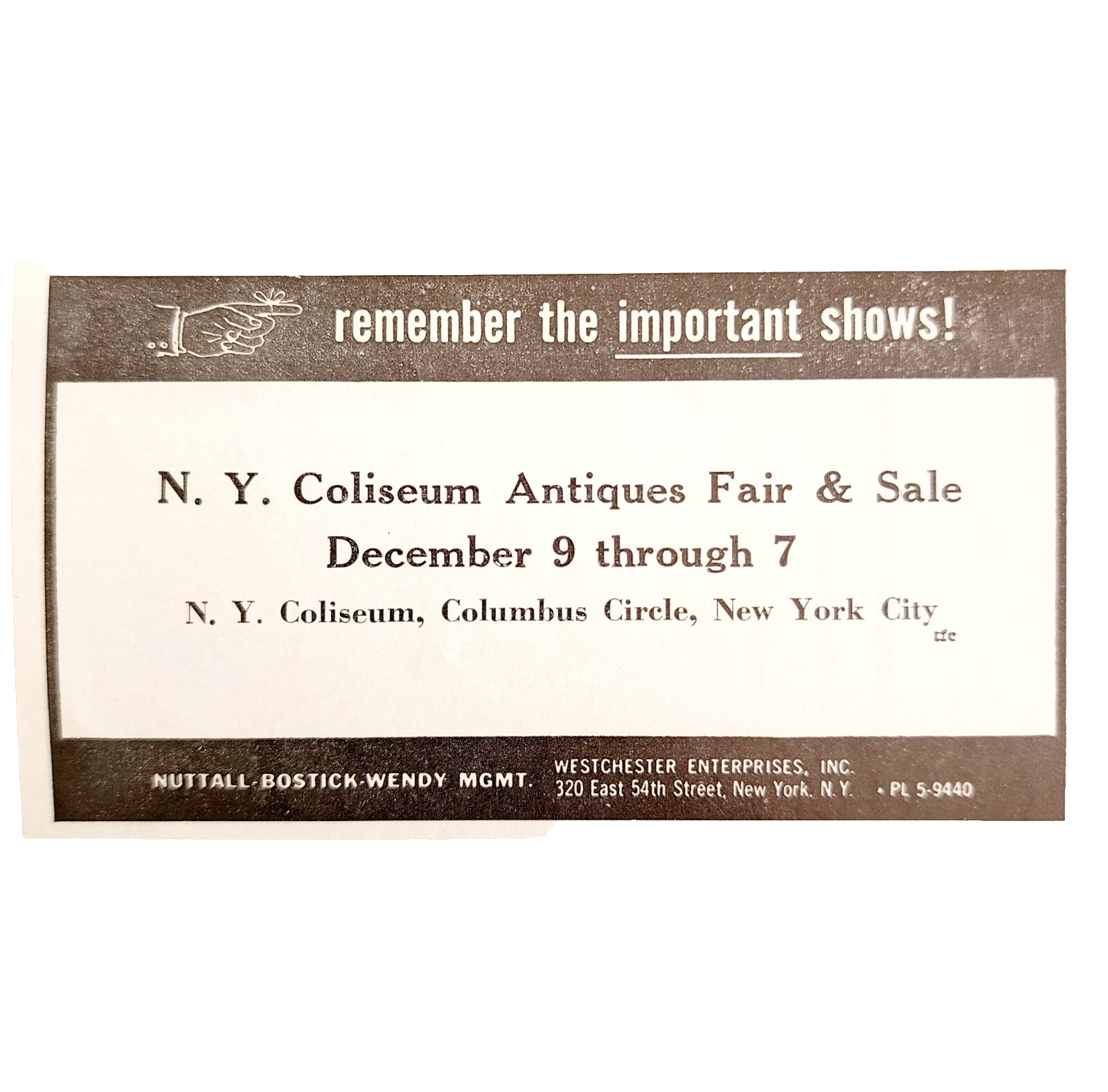 1967 NY Coliseum Antiques Fair & Sale Advertisement Collectibles Event F13B