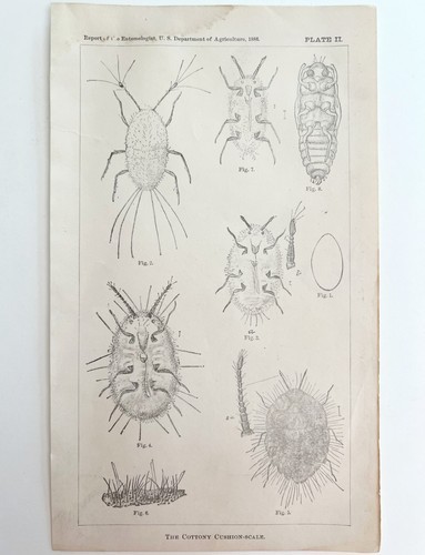 Cottony Cushion Scale Insect Drawings Victorian 1887 Art Print Entomology DWT9B
