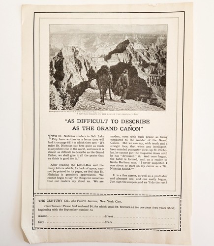1927 Navajo At Grand Canyon With Horse Photo Print Santa Fe Railway St Nicholas