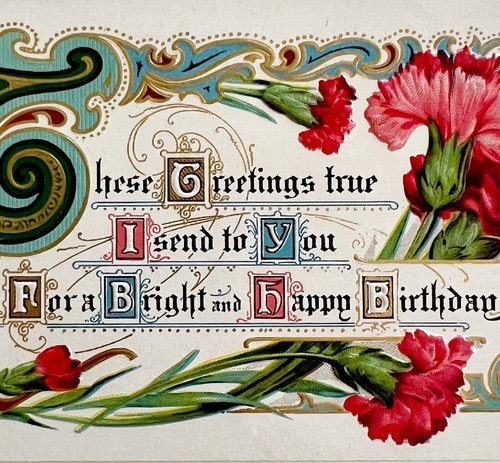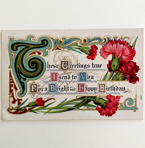 Happy Birthday Greeting Postcard 1910s Pink and 35 similar items