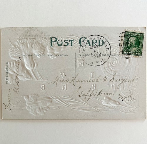 Happy Birthday Greeting Postcard 1910s Pink Flowers Embossed Motto No 2 PCBG3D
