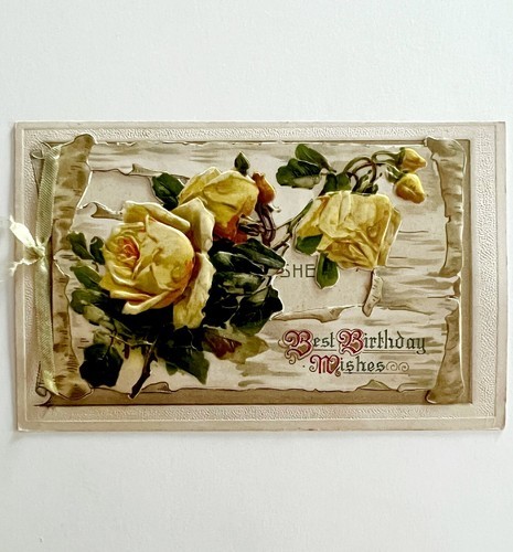 Best Birthday Wishes Greeting Card 1910s Ribbon Embossed Roses Germany PCBG3D